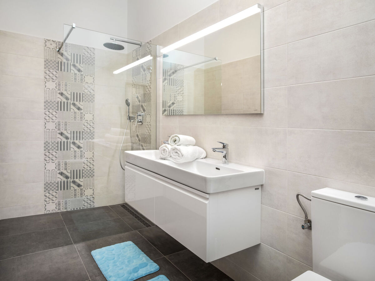 2 chambres, chaque chambre avec: 1 grand-lit (160 cm, longueur 200 cm), douche/WC et air-conditionné.