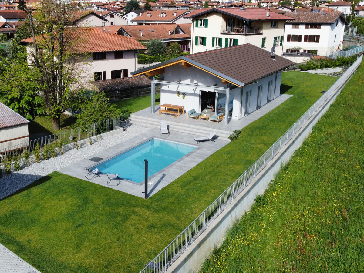 A usage privé: terrain 600 m2 (clôturé) avec pelouse, piscine rectangulaire (8 x 4 m, disponibilité saisonnière: 01.Avr.
