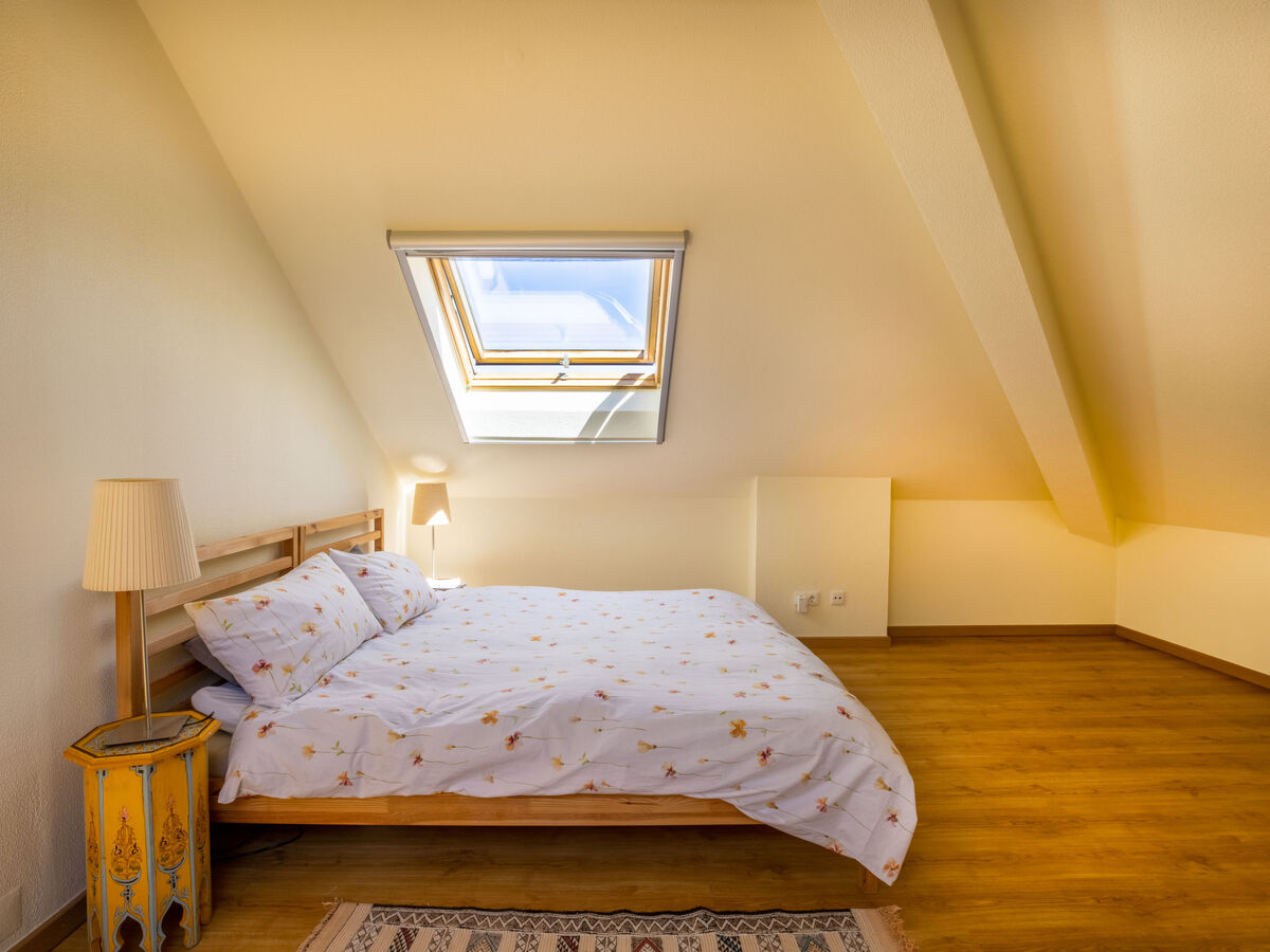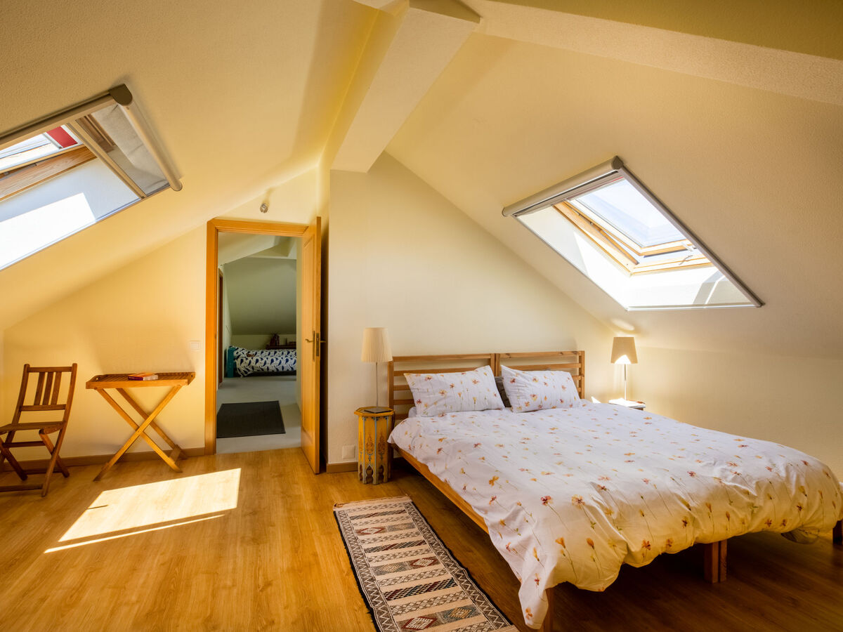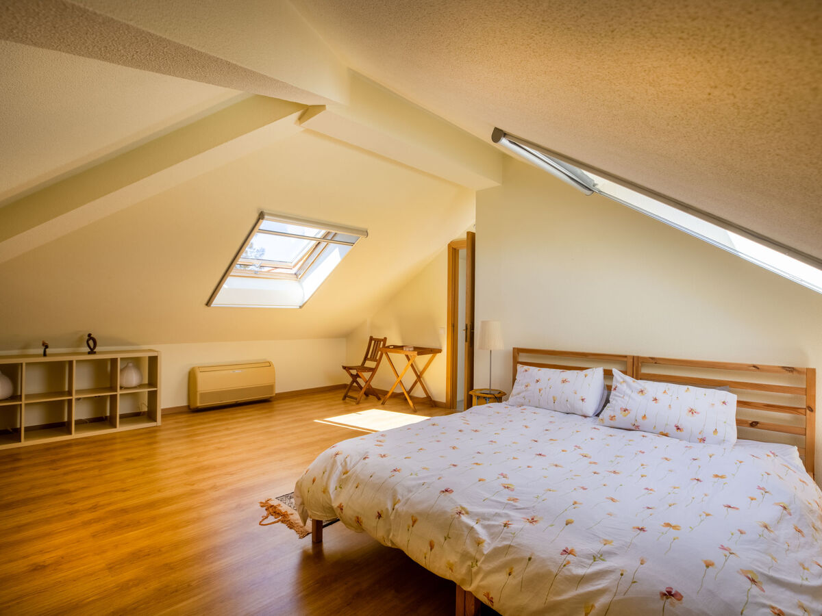 À l'étage supérieur: 1 chambre avec 1 lit double (2 x 90 cm, longueur 200 cm), air-conditionné et chauffage à air chaud.