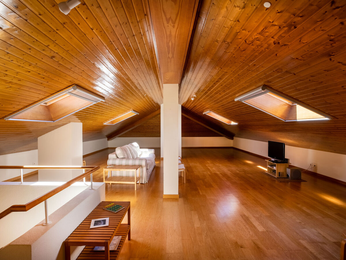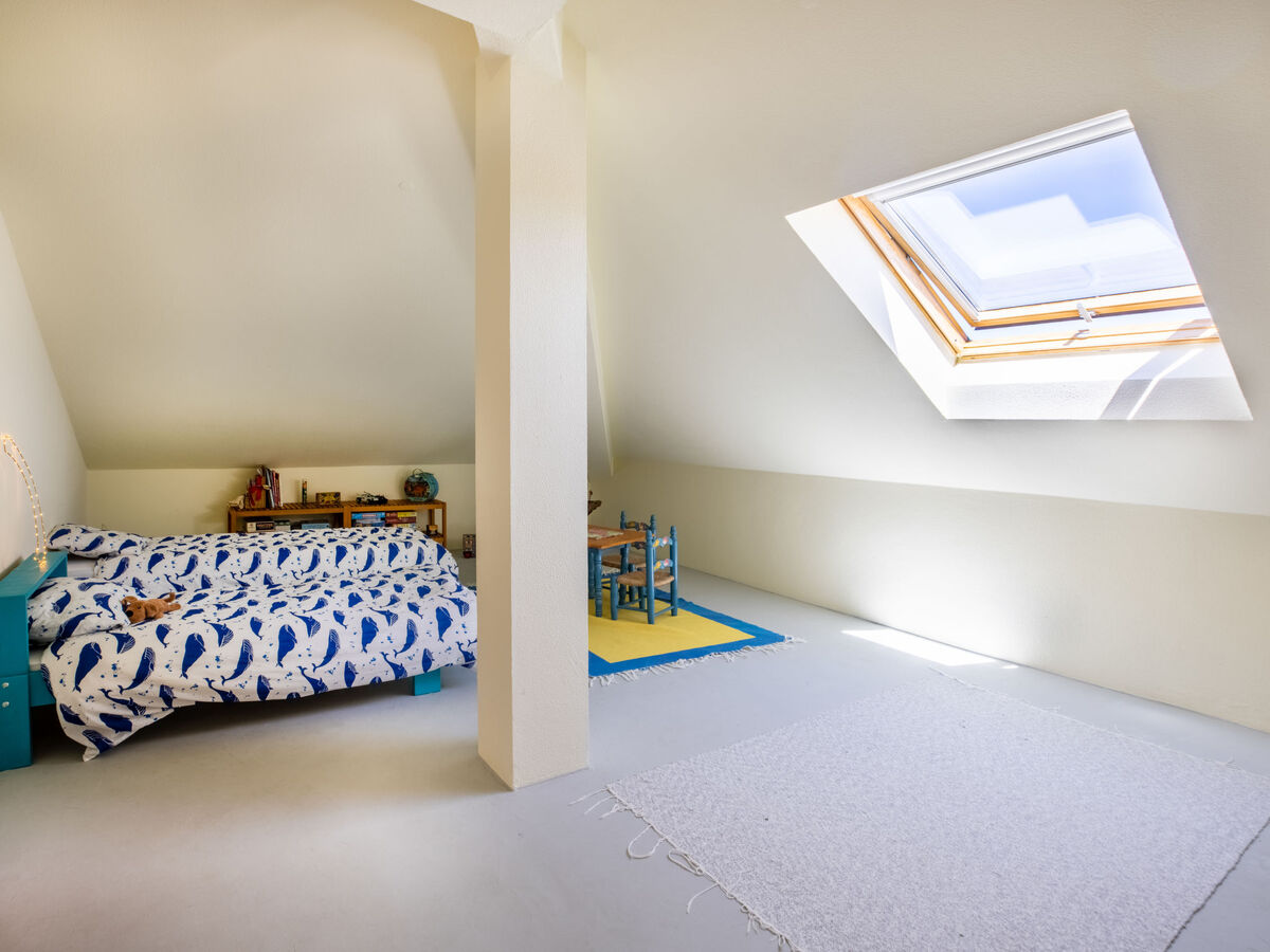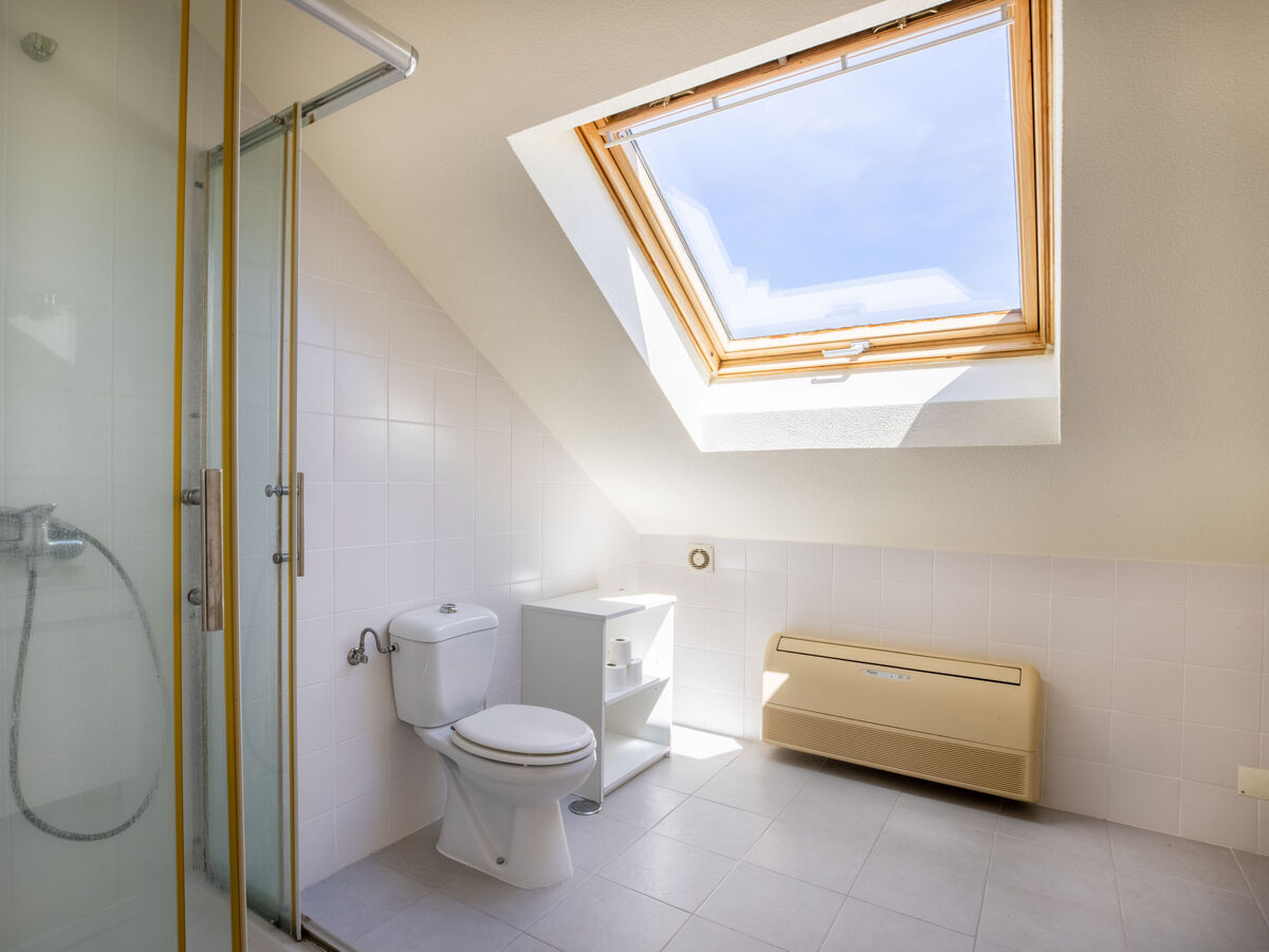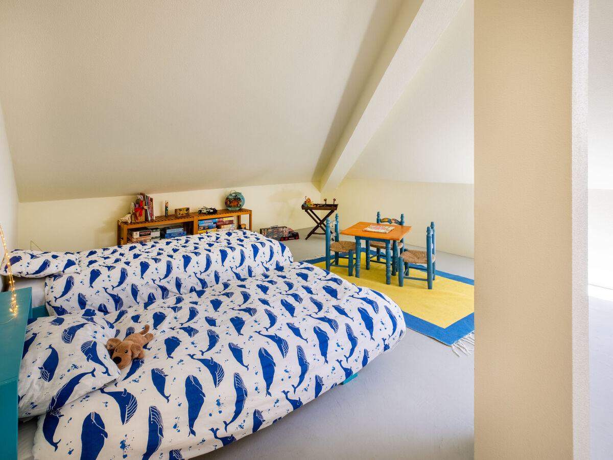 À l'étage supérieur: 1 chambre avec 1 lit double (2 x 90 cm, longueur 200 cm), air-conditionné et chauffage à air chaud.