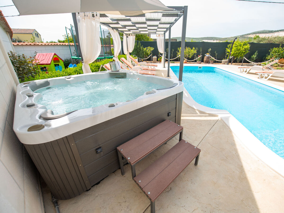 Douche extérieure, bain à remous , pool house avec réfrigérateur et plaque de cuisson, terrasse (50 m2).