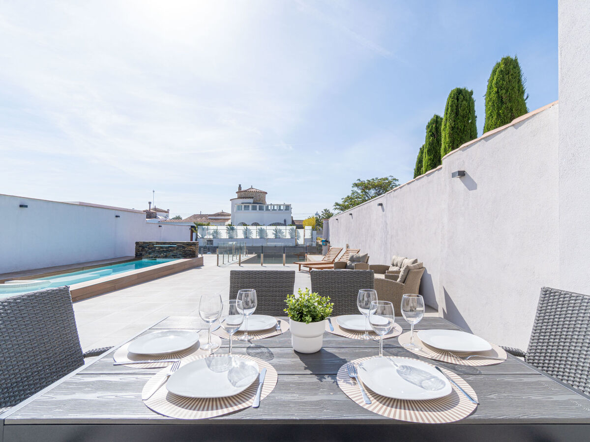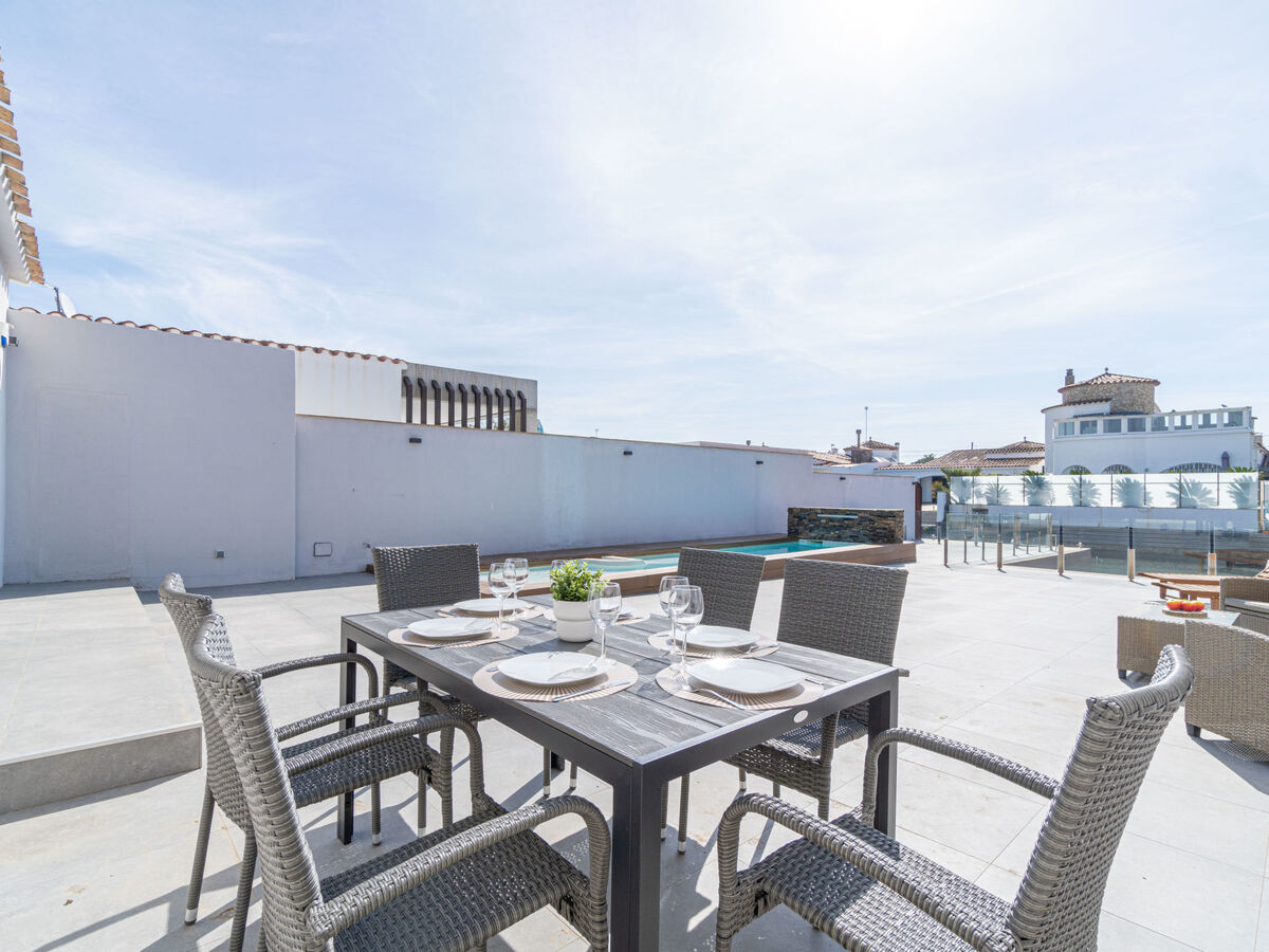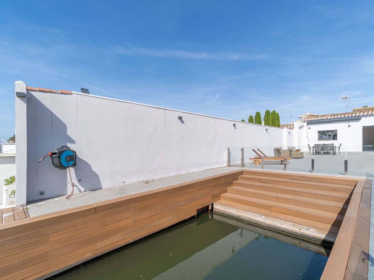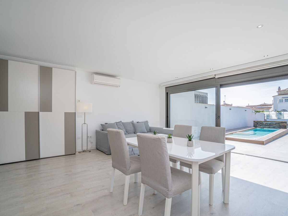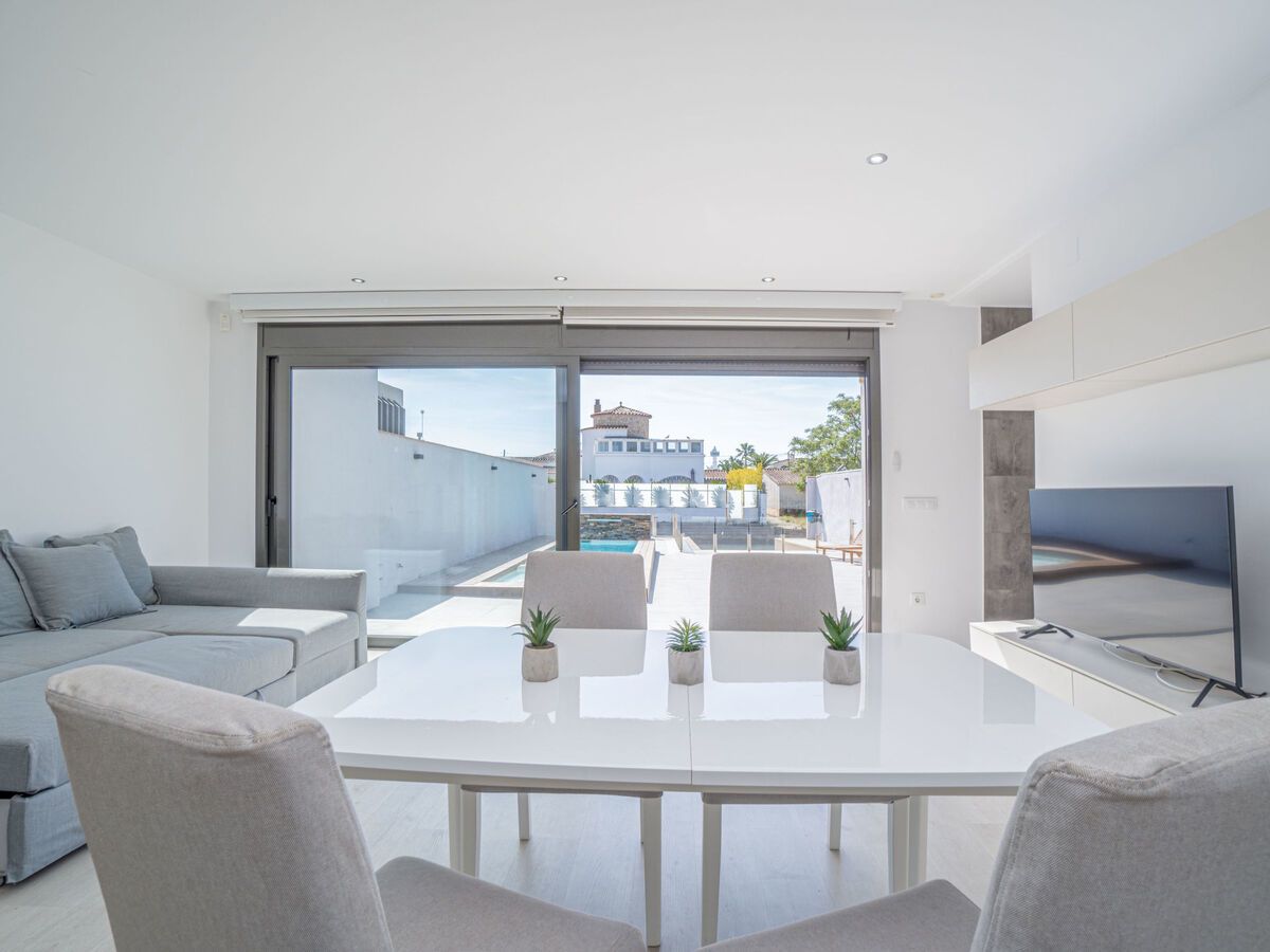 Dans le quartier de Medes, à 1 km du centre d'Empuriabrava, situation tranquille, ensoleillée quartier résidentiel, zone avec peu de trafic, à 900 m de la mer, juste au bord du canal, dans une impasse.