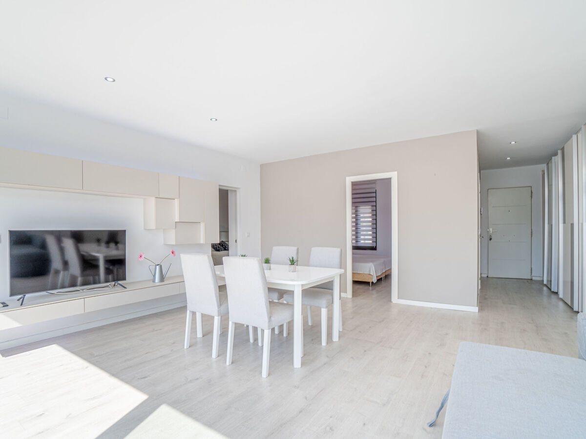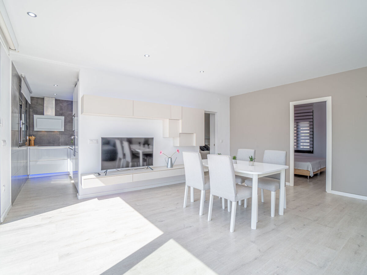 Spacieux et clair, complètement rénovée, aménagement fonctionnel et moderne: séjour/salle à manger avec 1 divan-lit double (180 cm, longueur 200 cm), table pour les repas, Télévision numérique, écran plat, air-conditionné, chauffage à air chaud et volet roulant électrique.