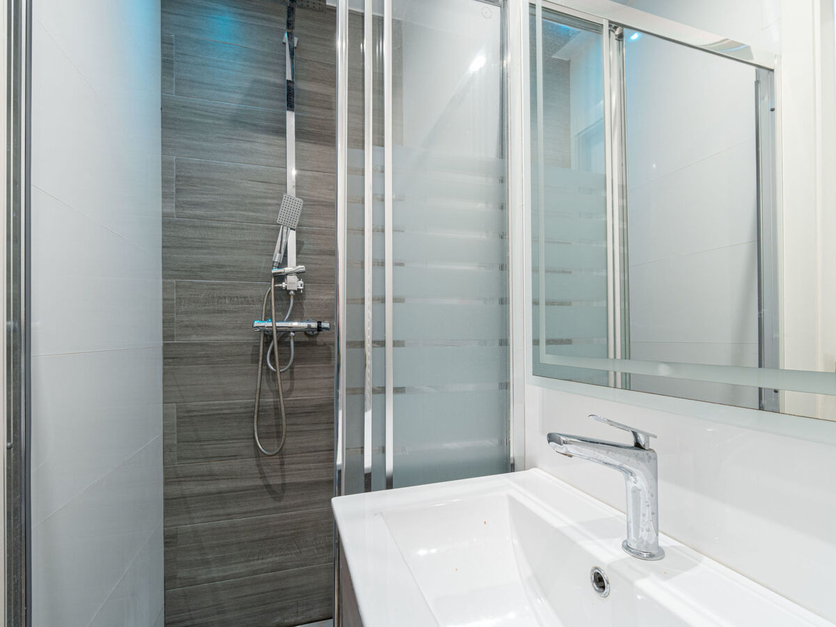 1 grande chambre avec Dressing avec 1 grand-lit (150 cm, longueur 190 cm), douche/WC, air-conditionné, chauffage à air chaud et volet roulant électrique.