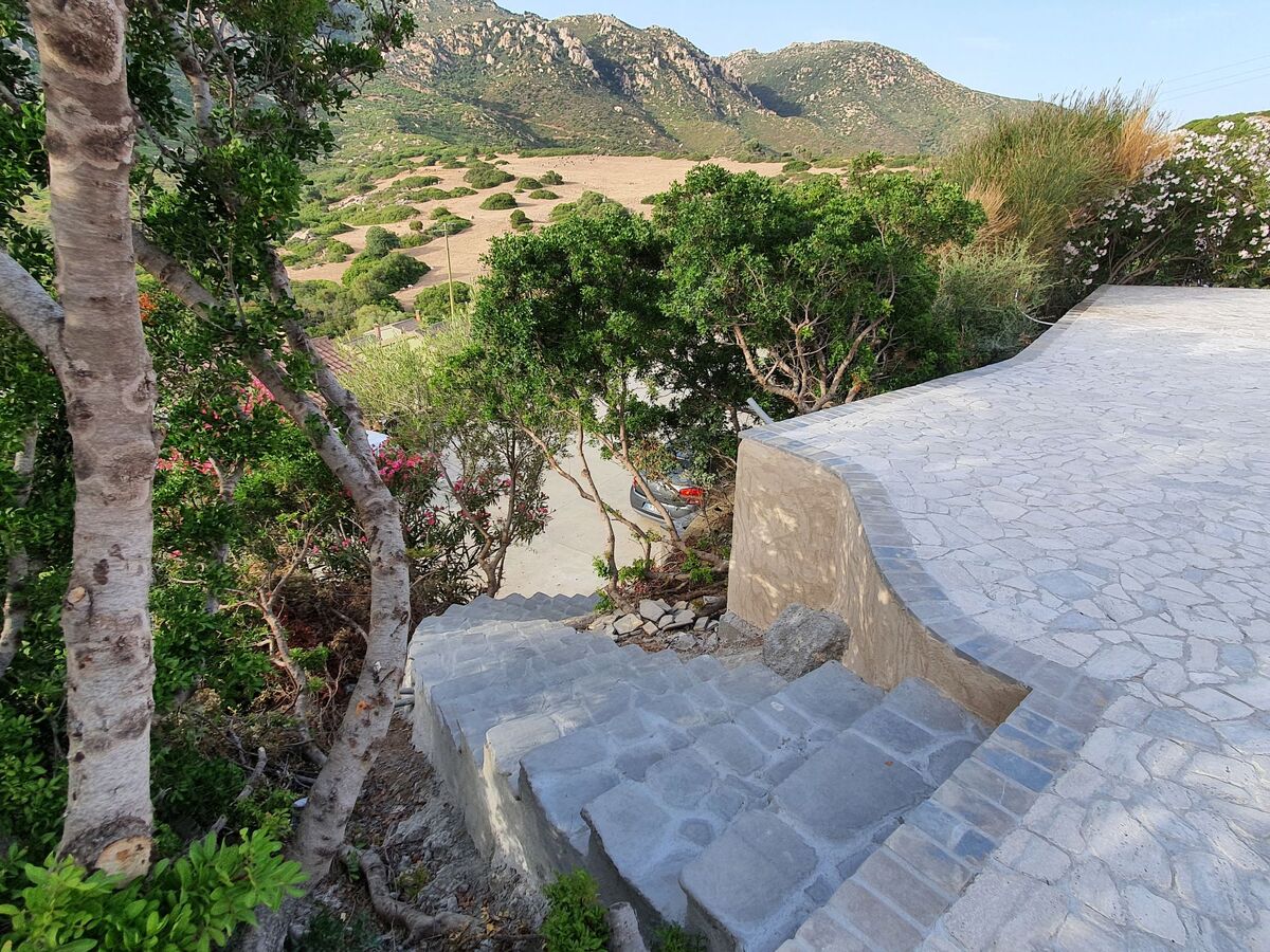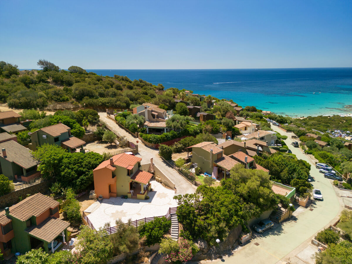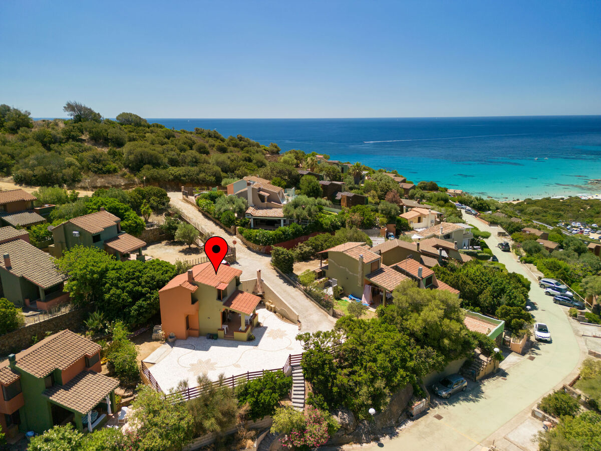 À 6.5 km du centre de Villasimius, situation ensoleillée quartier résidentiel, à 600 m de la mer, à 600 m de la plage, dans la verdure.