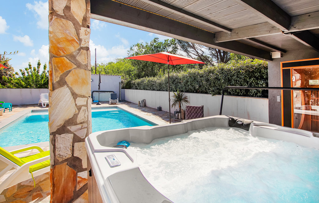 Bien-être à l'extérieur : Location de vacances disposant de chaises-longues et d'un ou plusieurs équipements tels que piscine extérieure, jacuzzi extérieur, lit à baldaquin de jardin etc...