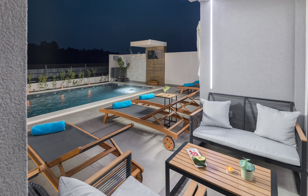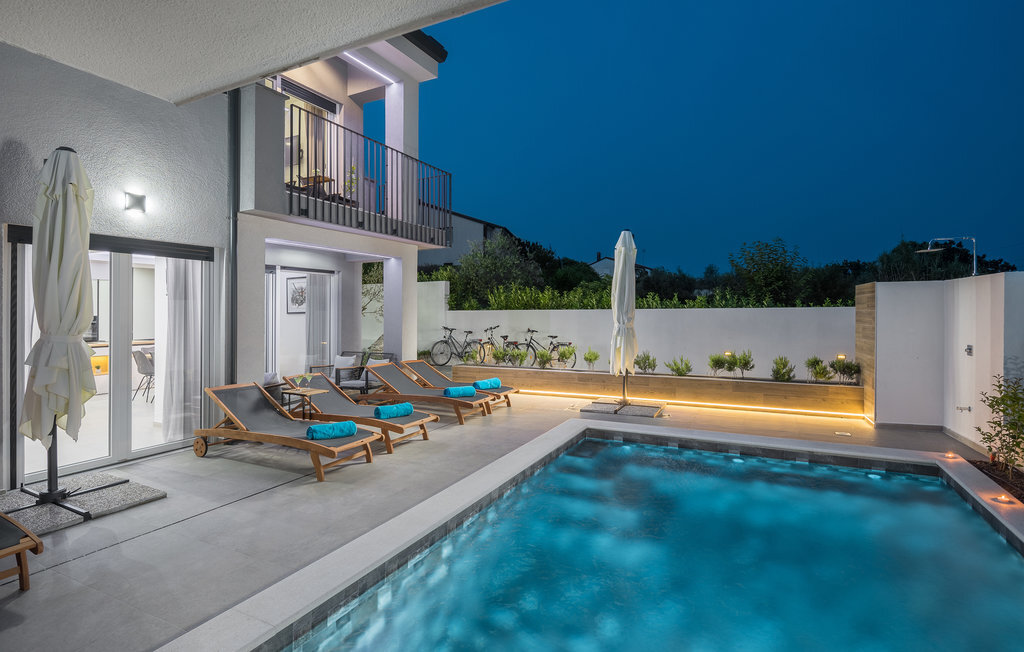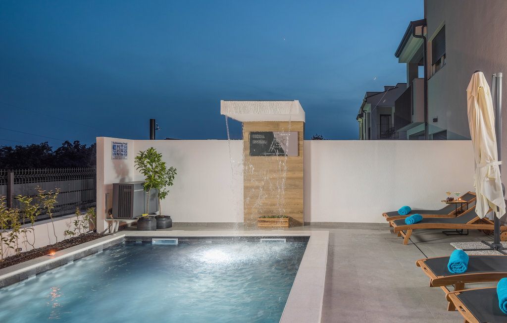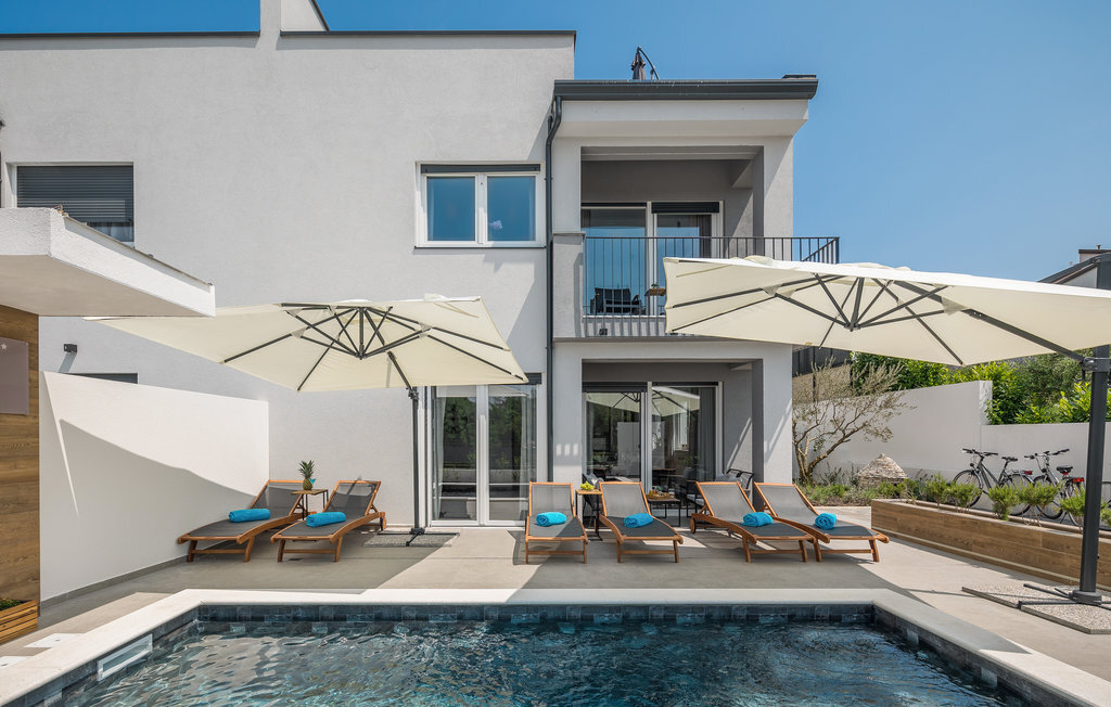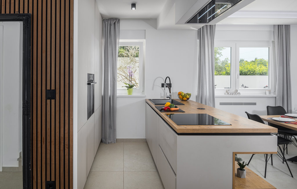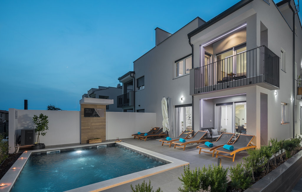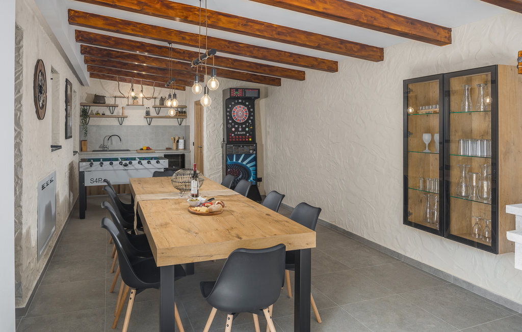 A quelques kilomètres de Porec, cette maison de vacances à plusieurs étages vous accueille à Nova Vas. Il s'agit d'une superbe maison qui répondra à tous vos souhaits. Profitez de l'aménagement moderne et confortable et du repos nocturne dans les chambres à coucher confortables. Le jardin, avec sa piscine et ses chaises longues, est également un espace agréable où vous pourrez passer de nombreuses heures par jour. Vous pourrez terminer vos soirées dans la cuisine extérieure avec barbecue maçonné, manger de bons petits plats et planifier vos prochains jours de vacances en vous amusant.