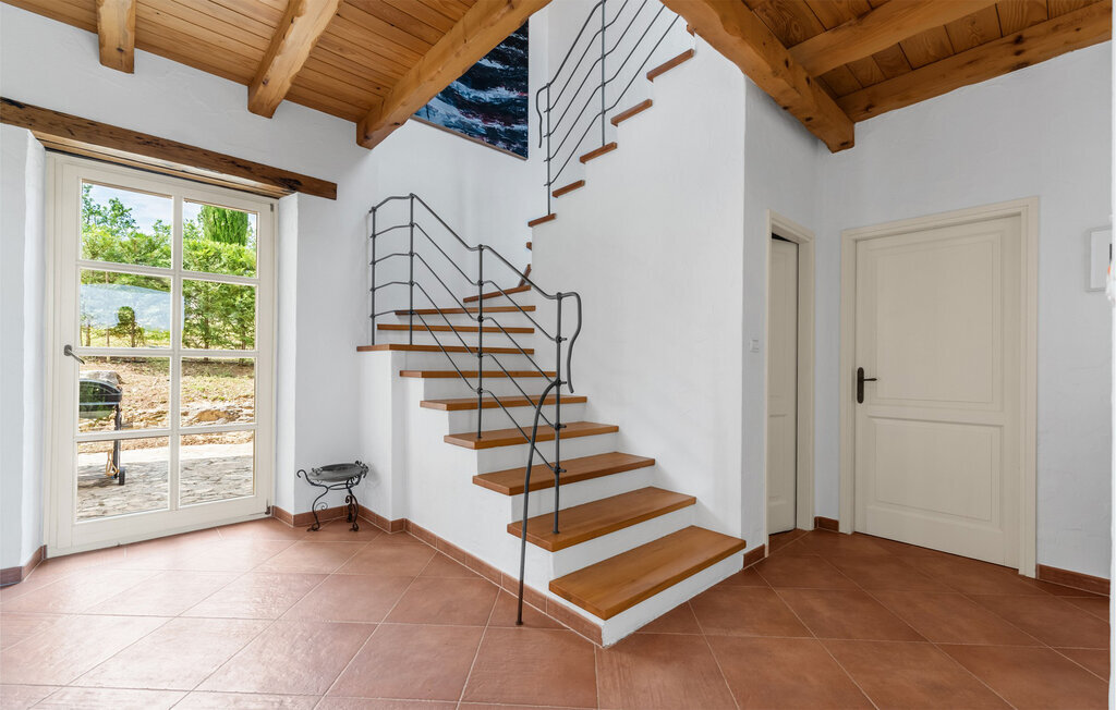 Bienvenue dans cette maison de vacances moderne et accueillante avec piscine, qui vous promet une intimité totale et une situation calme avec vue sur la campagne. Entrez et explorez les deux étages qui, dans un jeu de bois et d'ameublement clair, créent un foyer confortable. Profitez de la vue sur la verdure à travers les grandes fenêtres et réunissez-vous le matin dans la salle de séjour qui relie le salon, la salle à manger et la cuisine. Préparez un délicieux petit déjeuner que vous pourrez prendre sur la terrasse.