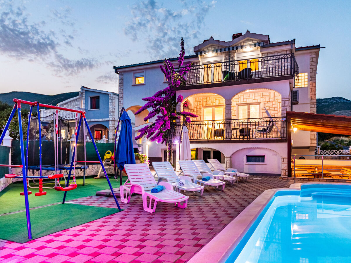 A usage privé: terrain 600 m2 (clôturé), piscine en forme d’haricot (7 x 3 m, profondeur 150 cm, disponibilité saisonnière: 01.Jun.