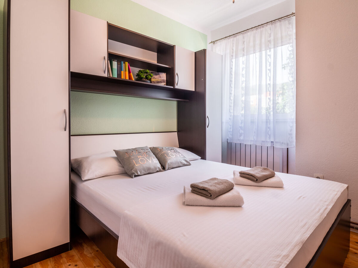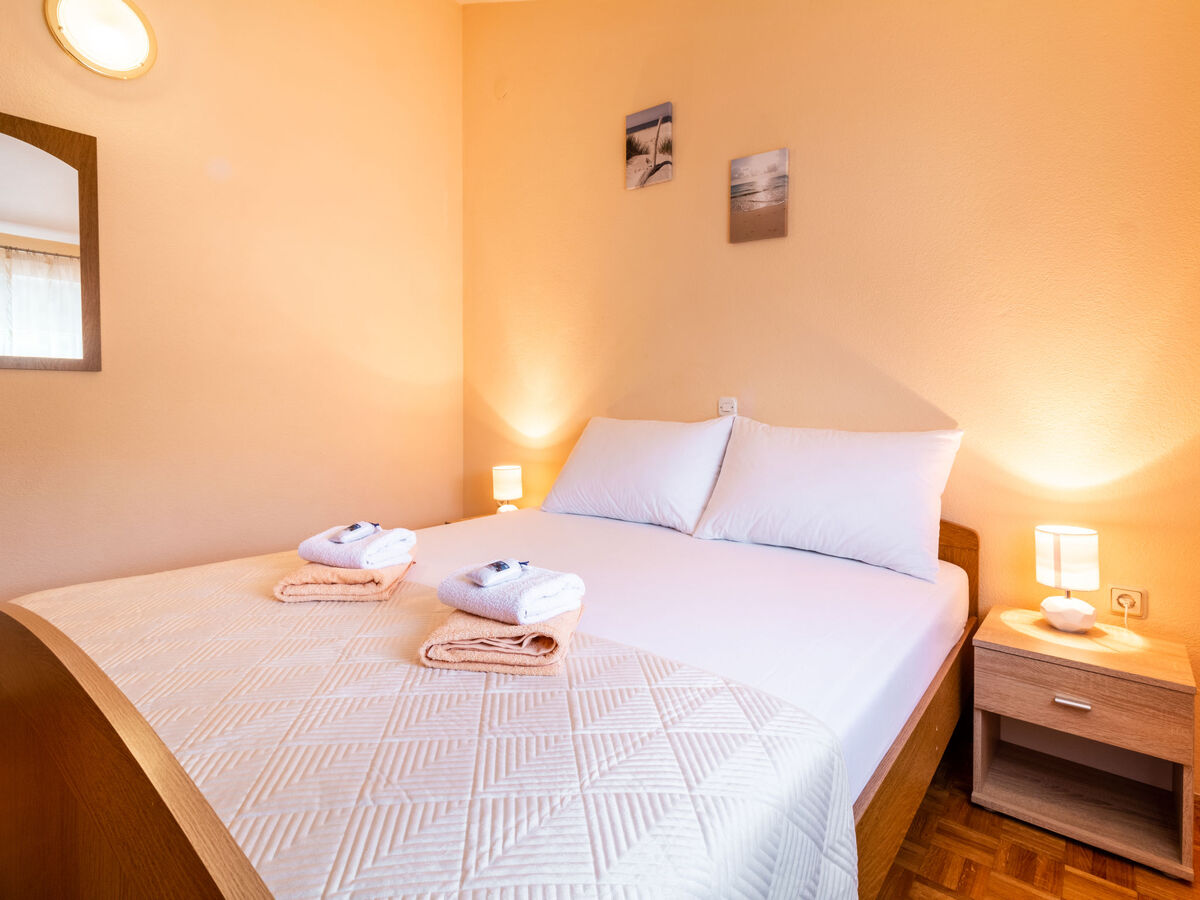 1 chambre avec 1 grand-lit (160 cm, longueur 200 cm).