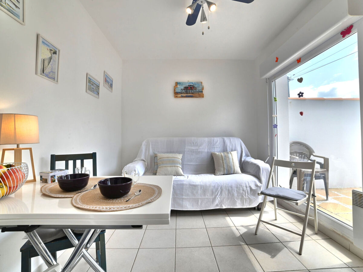 Aménagement simple et confortable: séjour/salle à manger avec 1 divan-lit double (1 x 140 cm, longueur 190 cm).