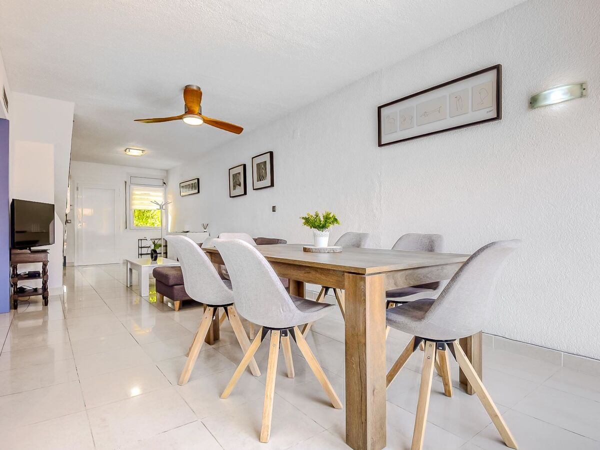 Clair, aménagement fonctionnel: séjour/salle à manger avec table pour les repas, TV, air-conditionné et chauffage à air chaud.
