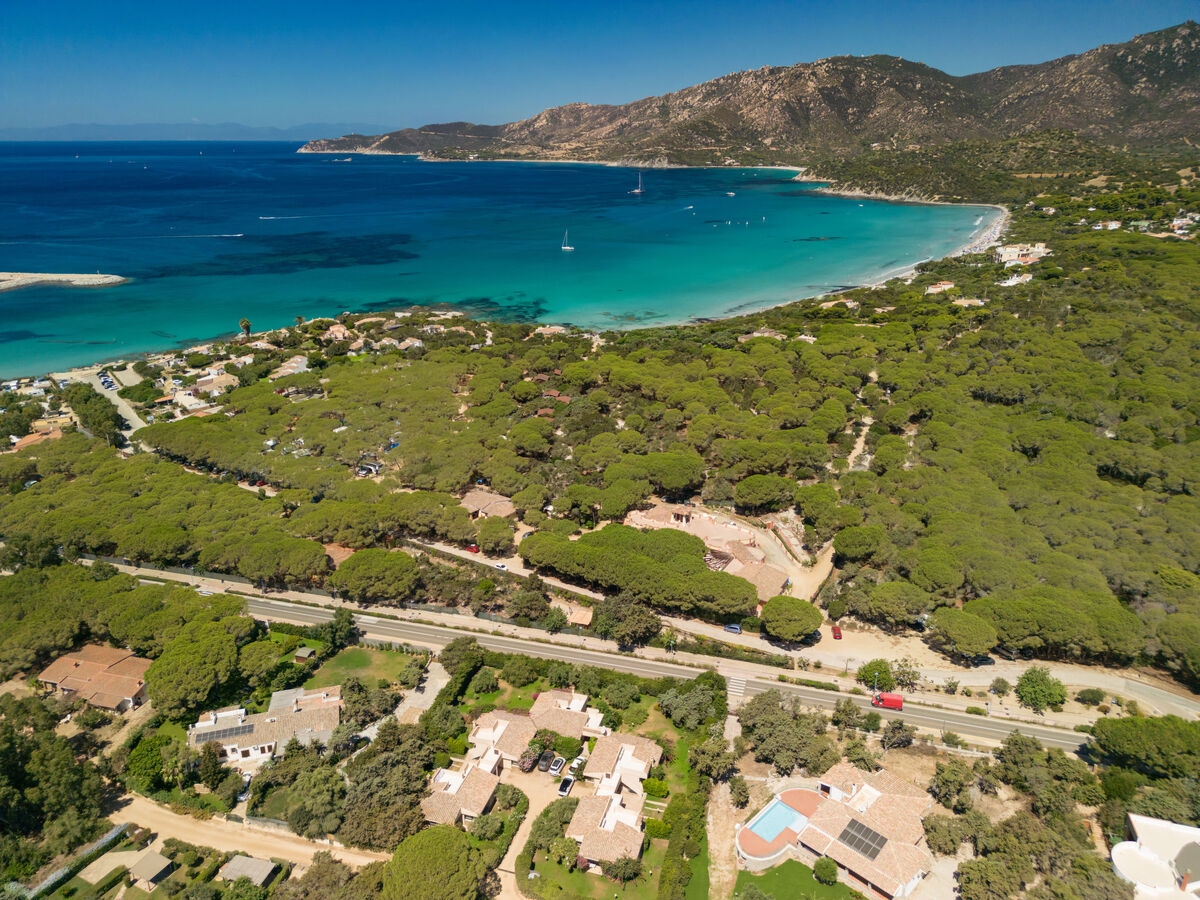 À 2.5 km du centre de Villasimius, situation ensoleillée quartier résidentiel, à 400 m de la mer, dans la verdure.