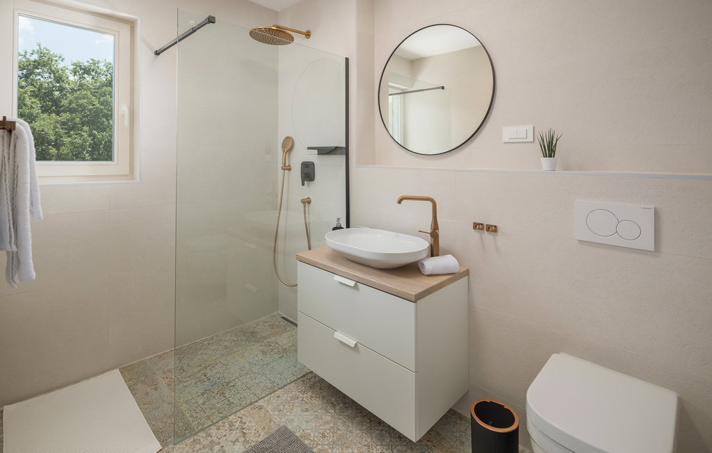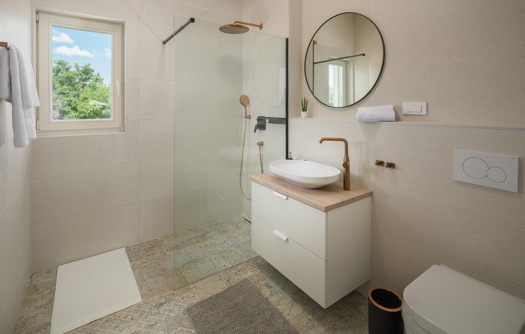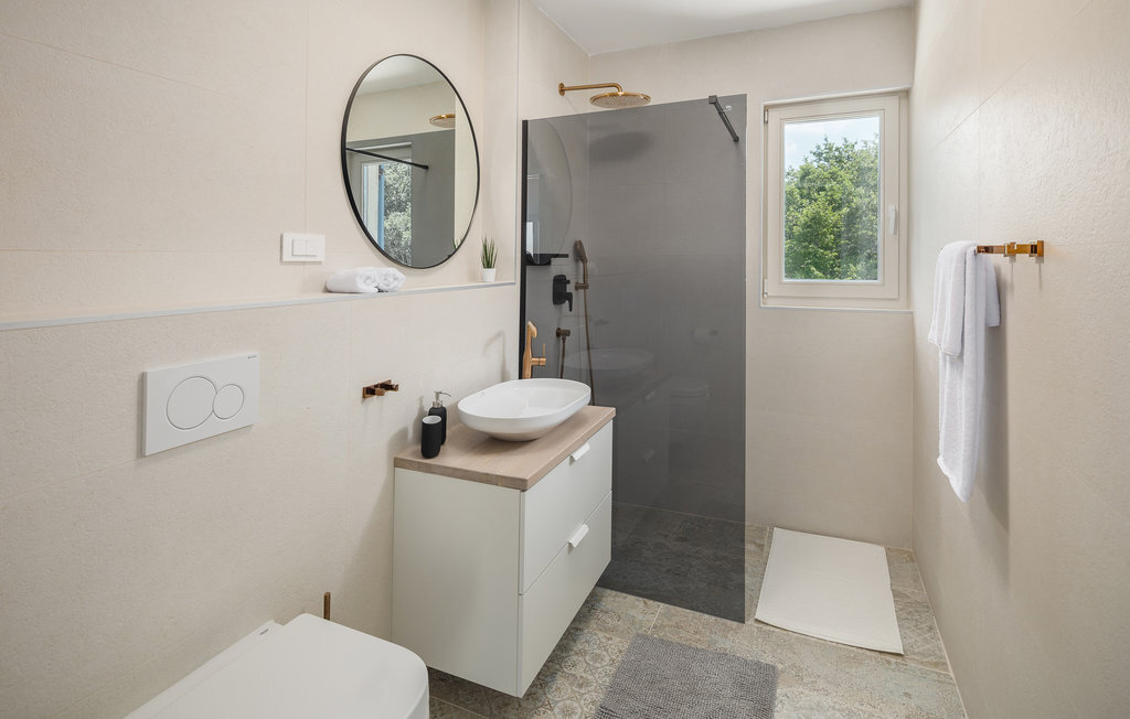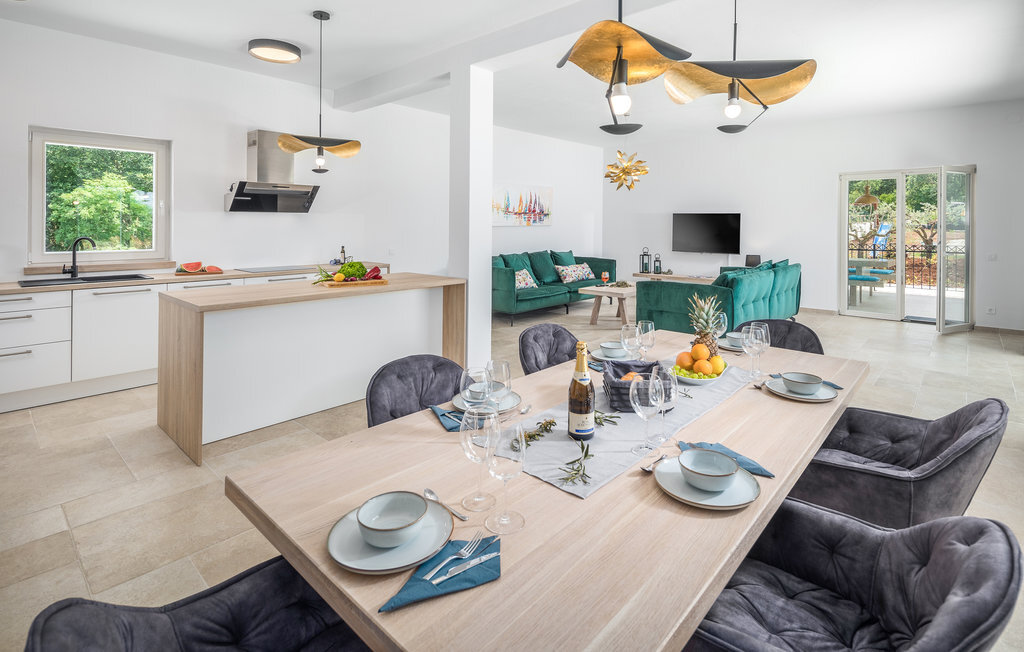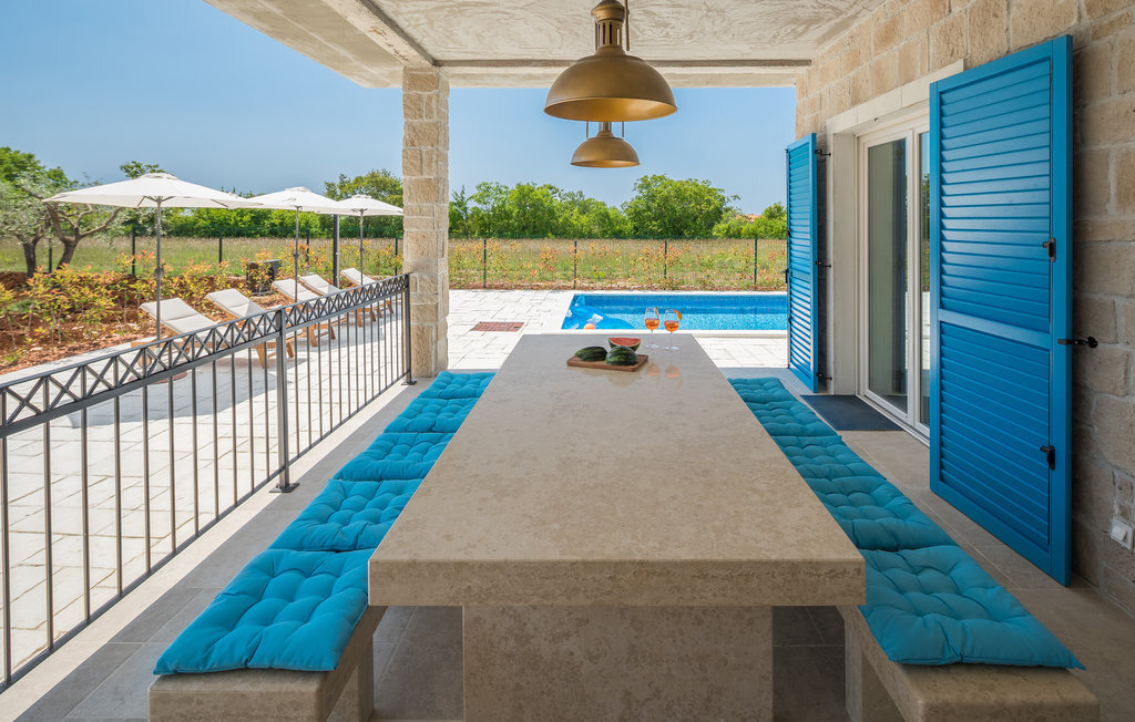 Bienvenue dans cette belle maison de vacances moderne au cœur de l'Istrie. C'est l'endroit idéal pour se détendre, se pencher en arrière et laisser derrière soi votre quotidien familial trépidant. L'intérieur de la maison est aménagé avec beaucoup de goût, de clarté et de belles touches de couleur. Ici, vous avez beaucoup de place sur deux étages pour passer les plus belles semaines de l'année dans un environnement de qualité. Le soir, faites un barbecue sur la terrasse couverte tout en regardant vos enfants jouer et se baigner dans la piscine. Mais la piscine ne sera pas le seul point de mire de vos petits, ils s'amuseront aussi beaucoup sur l'aire de jeux privée.