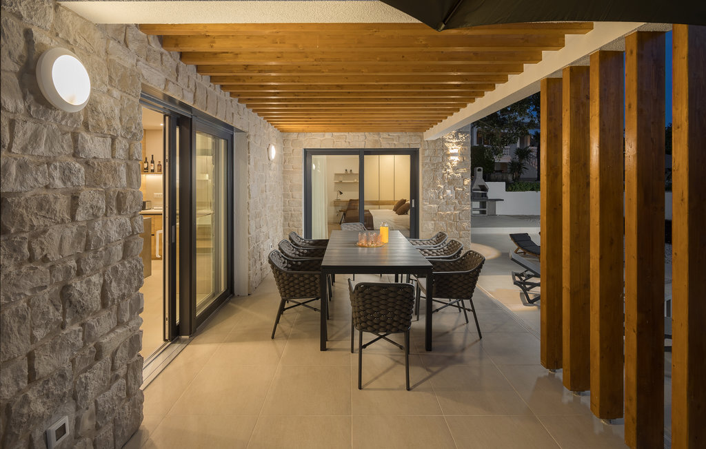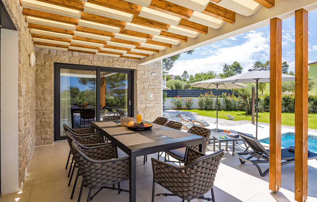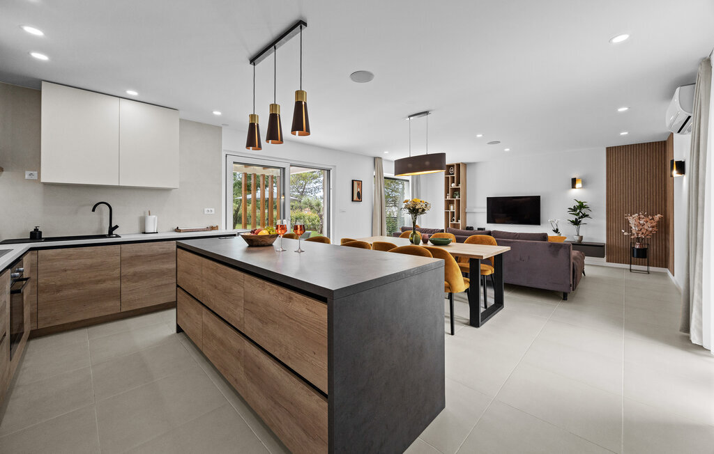 Un design clair et accueillant crée une véritable atmosphère de bien-être qui vous permettra, à vous et à votre famille, de vous détendre. Venez vous reposer ici et profitez des espaces agréables qui vous invitent à des activités communes. Préparez vos plats préférés dans la cuisine ouverte ou passez une soirée cinéma divertissante sur le canapé. Vous pouvez également vous réunir sur la terrasse pour des heures de jeux et d'amusement en commun et profiter des heures de soleil pour vous détendre sur la chaise longue ou dans la piscine.