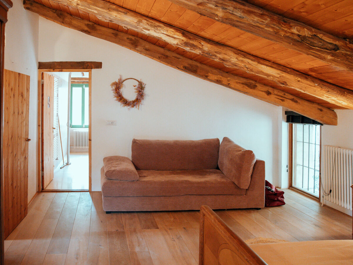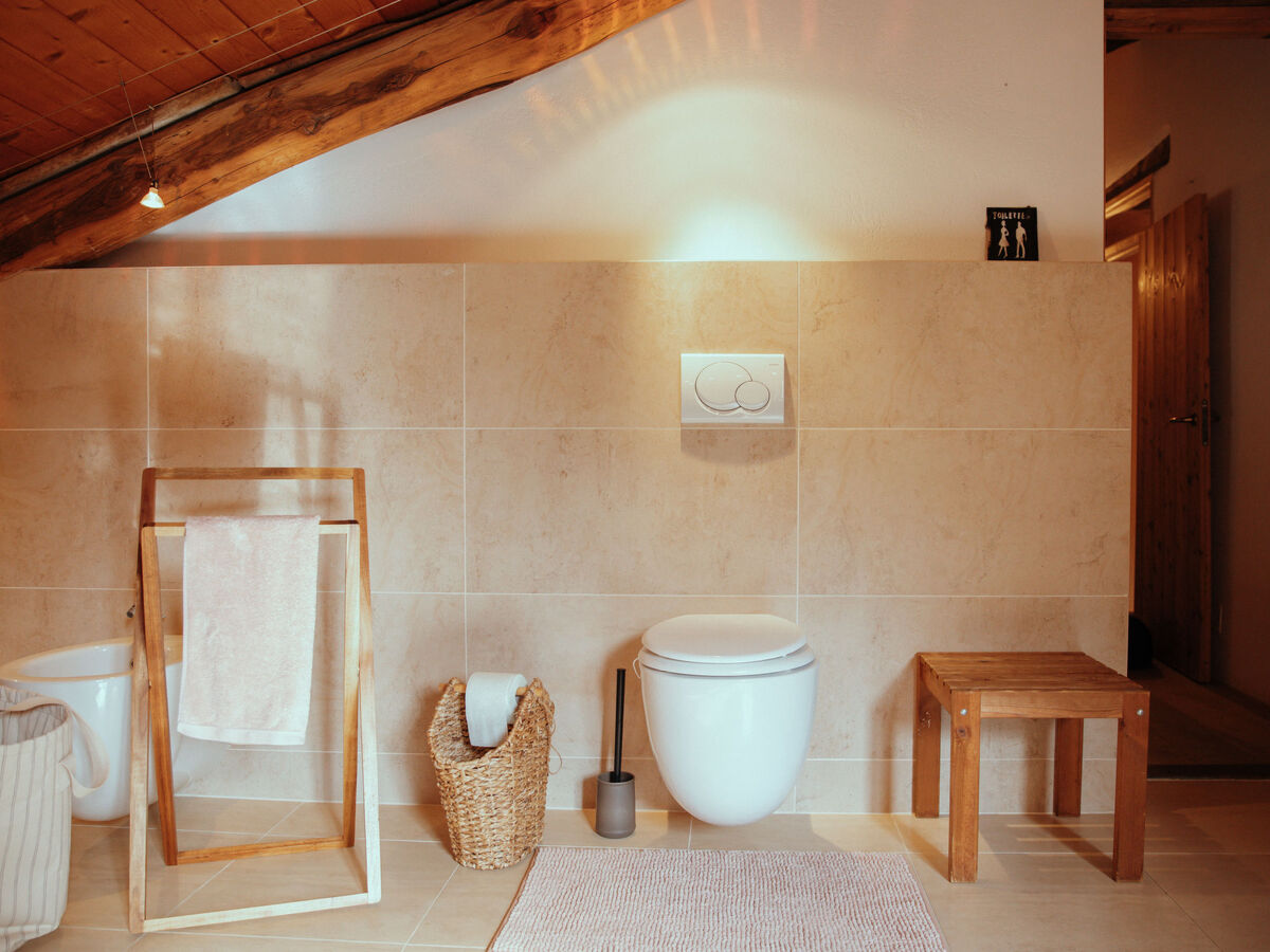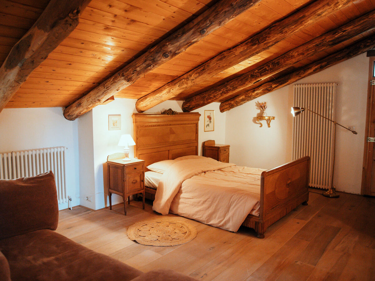 À l'étage supérieur: 1 chambre double avec 1 grand-lit (140 cm, longueur 200 cm).