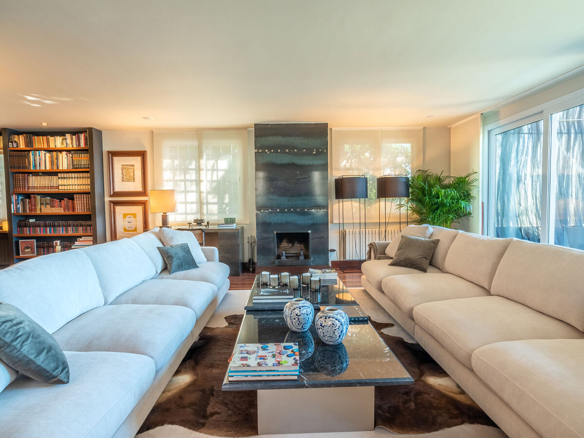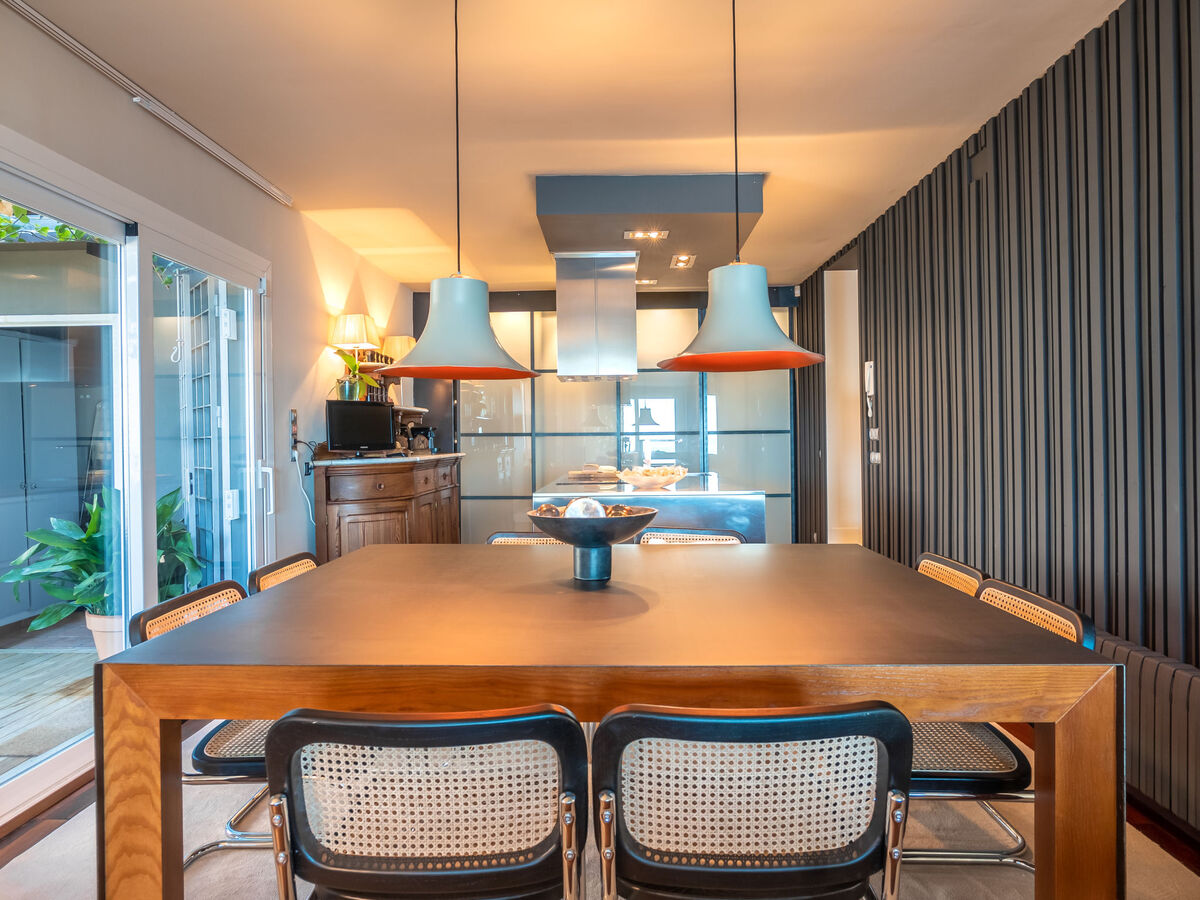 Spacieux et clair, aménagement très confortable et de style: grand séjour/salle à manger ouvert avec baie vitrée avec cheminée (uniquement à titre de décoration), table pour les repas, Télévision numérique, écran plat, air-conditionné et chauffage à air chaud.