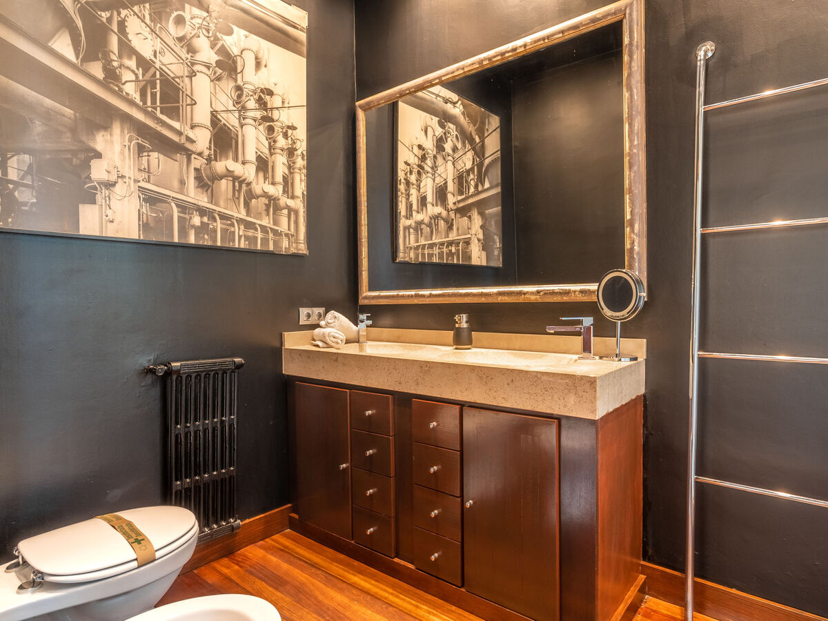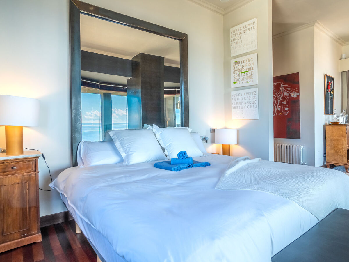 À l'étage supérieur: 1 grande chambre double avec baie vitrée avec 1 grand-lit (200 cm, longueur 200 cm), cheminée (uniquement à titre de décoration), douche/bidet/WC, double vasque, Télévision numérique, écran plat, air-conditionné et chauffage à air chaud.