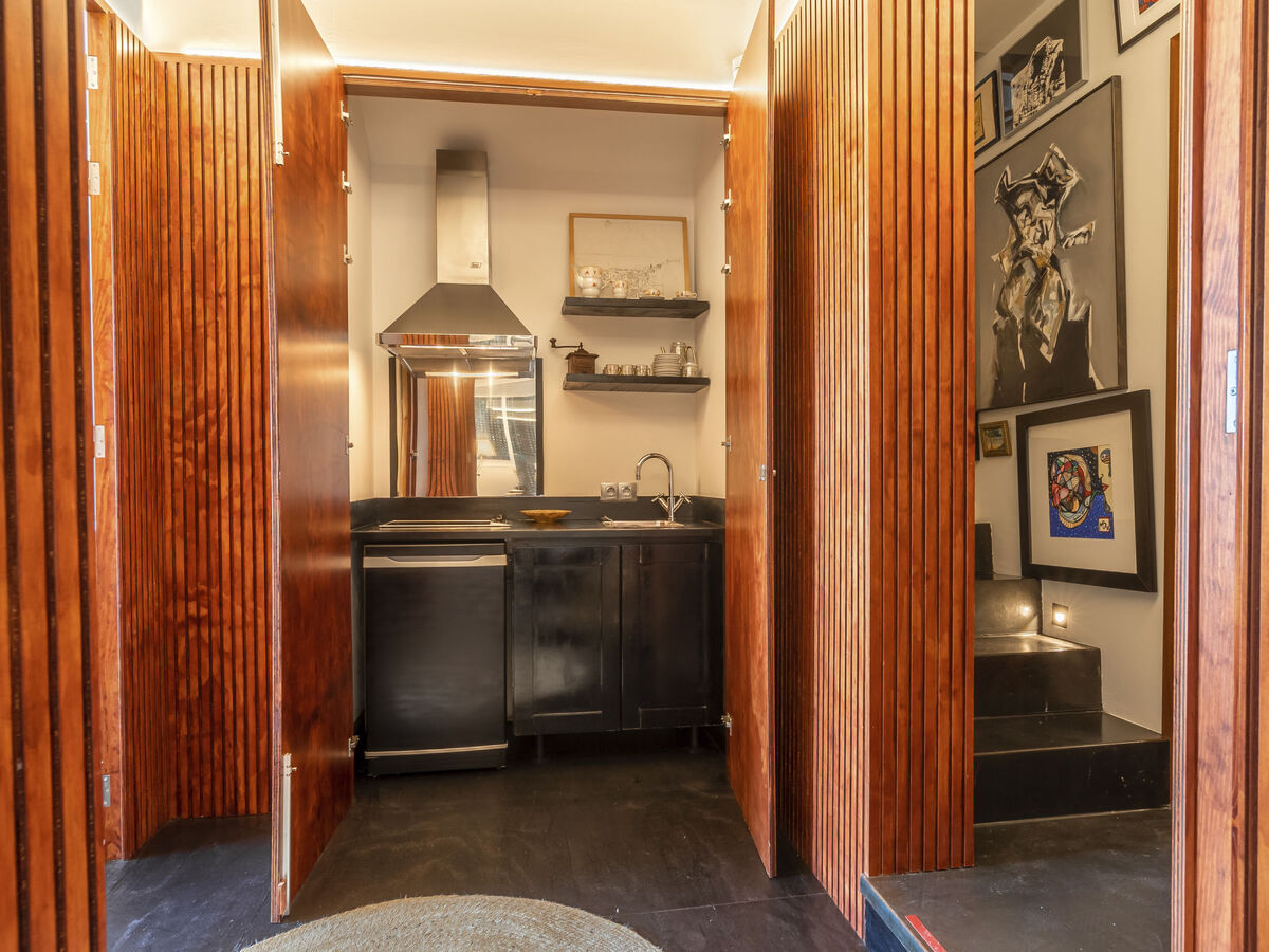 Cuisine ouverte (four, lave-vaisselle, 3 plaques vitrocéramiques, grille-pain, bouilloire électrique, micro-ondes, congélateur, cafetière électrique, ilot de cuisine).