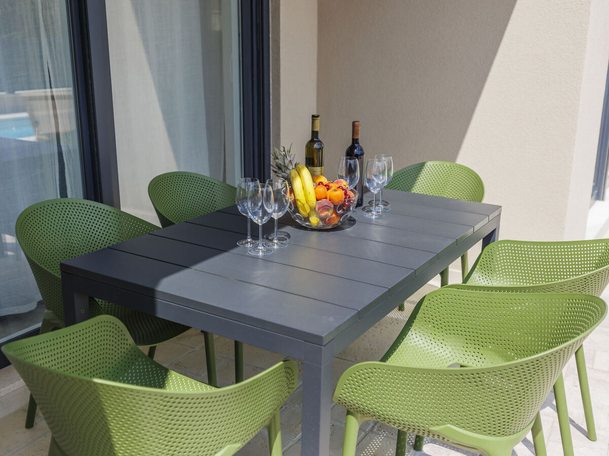 A usage privé: terrain 300 m2 (clôturé), petit jardin avec plantes, piscine rectangulaire (6 x 3 m, profondeur 140 cm, disponibilité saisonnière: 01.Mai.