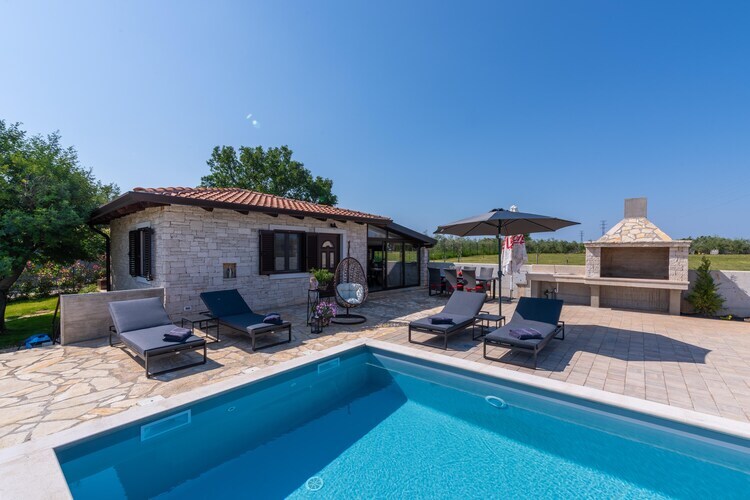 Rez-de-chaussée: (Salle de séjour(lit double, TV(écran plat, satellite), coin salon, climatisation), cuisine(table, bouilloire, grille-pain, plaque de cuisson, four, micro ondes, lave-vaisselle , combinaison réfrigérateur/congélateur), chambre avec salle de bains(lit double, TV(écran plat, satellite), douche, lavabo, WC, bidet, climatisation), salle de bains(douche, lavabo, WC), terrasse(privé)) lave-linge , climatisation, terrasse, jardin, mobilier de jardin, transats, barbecue, parking, parasol, piscine(privé), salon de jardin
