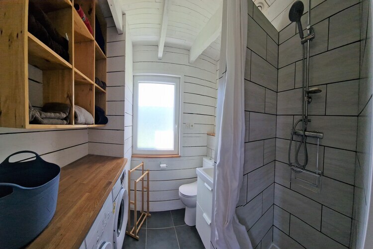 Rez-de-chaussée: (salon(TV(pas de chaînes de télévision néerlandaises, pas de chaînes de télévision allemandes), cheminée), cuisine/salle à manger(bouilloire, grille-pain, plaque de cuisson(4 foyers, gaz), cafetière/percolateur, four, micro ondes, lave-vaisselle , réfrigérateur), chambre(lit double(160 x 200 cm)), salle de bains(douche, WC)) Au 1er étage: (chambre en mezzanine(lit simple(90 x 190 cm), lit double(160 x 200 cm))) sèche-linge, lave-linge , chauffage(électrique), terrasse, jardin(privé, 800 m2), mobilier de jardin
