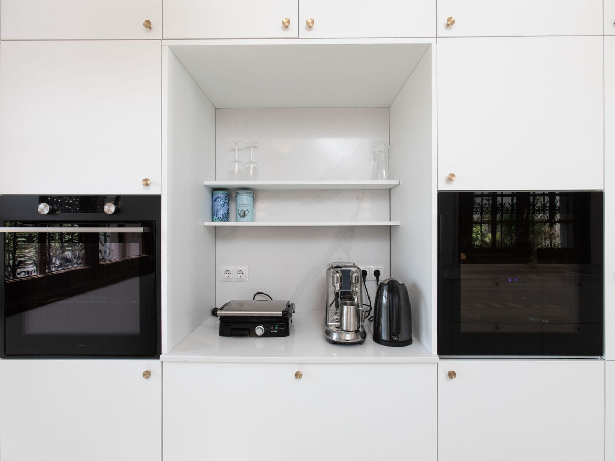 Cuisine (four, lave-vaisselle, 3 plaques à induction, grille-pain, bouilloire électrique, micro-ondes, congélateur, cafetière électrique).