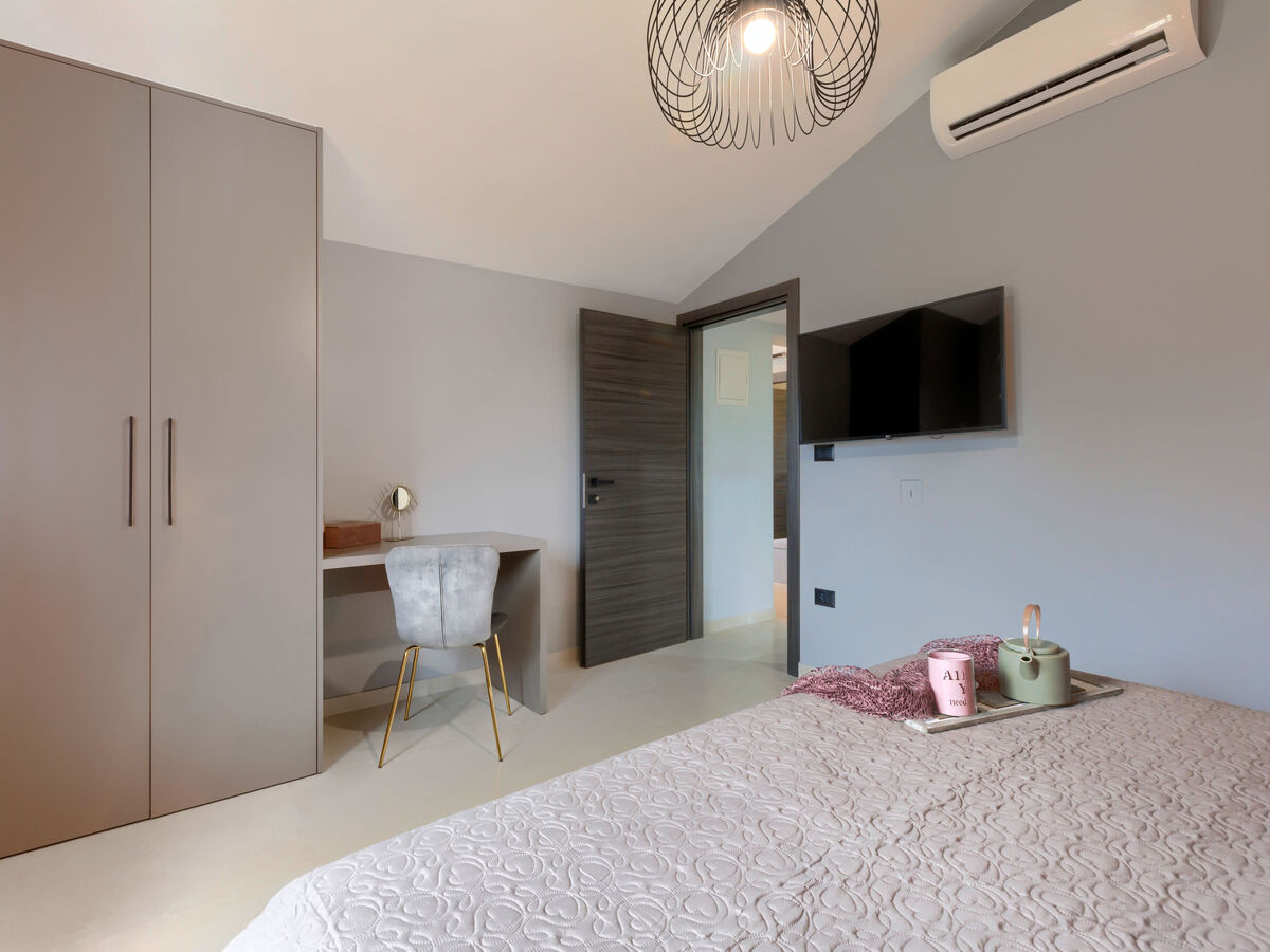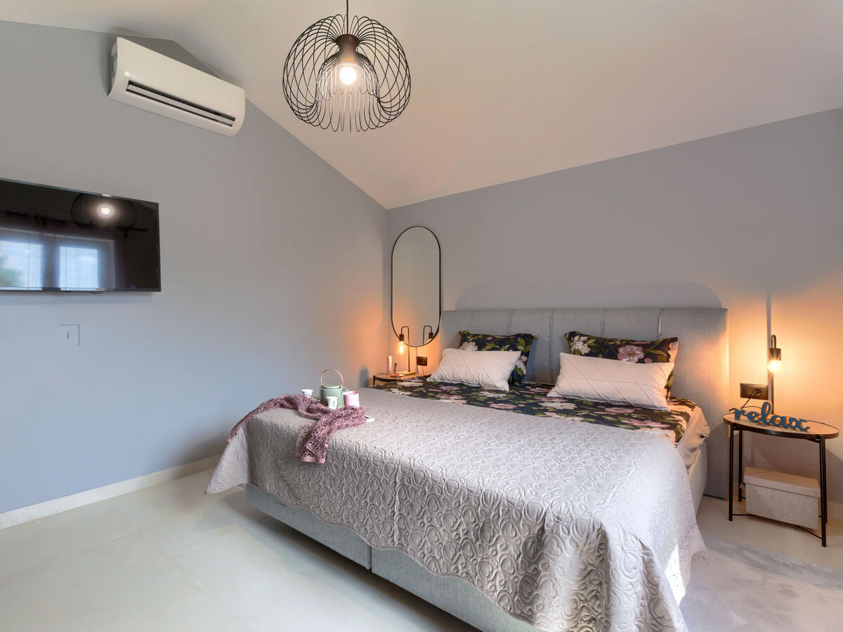 1 chambre avec 1 grand-lit (180 cm, longueur 200 cm), TV (satellite) (écran plat), air-conditionné.
