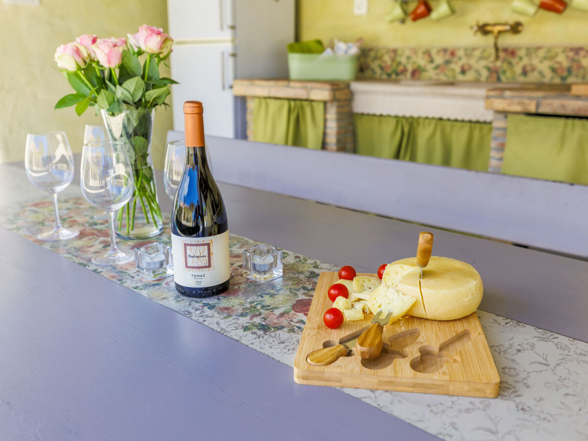 A usage privé: terrain 600 m2 (clôturé), jardin 800 m2 (pas clôturé) avec pelouse et plantes, piscine (28 m2, profondeur 140 cm, disponibilité saisonnière: 01.Mai.