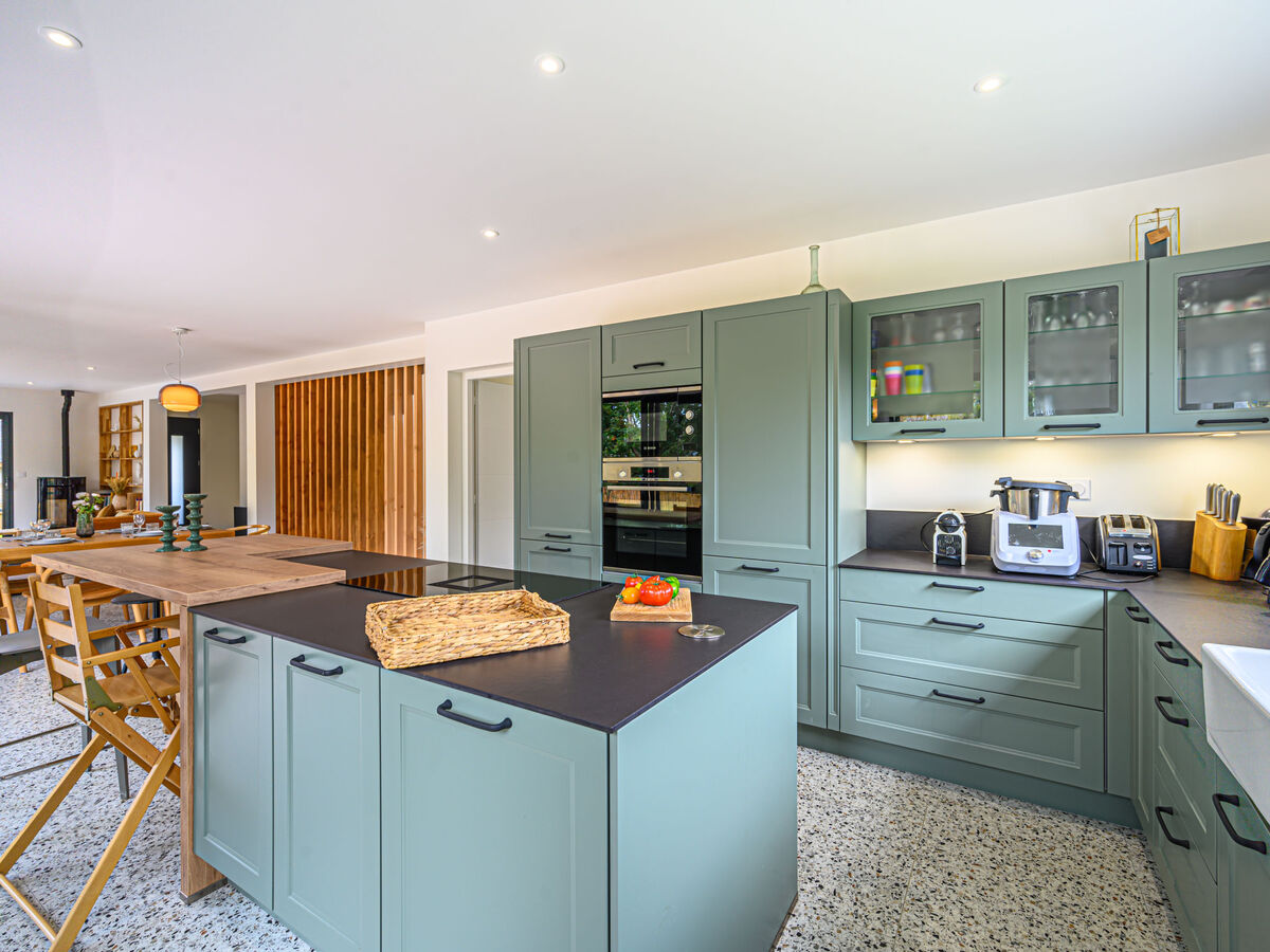 Cuisine ouverte (four, lave-vaisselle, 4 plaques à induction, grille-pain, bouilloire électrique, micro-ondes, congélateur, cafetière électrique, Capsules pour machine à café (Nespresso) (NON INCLUSES)).