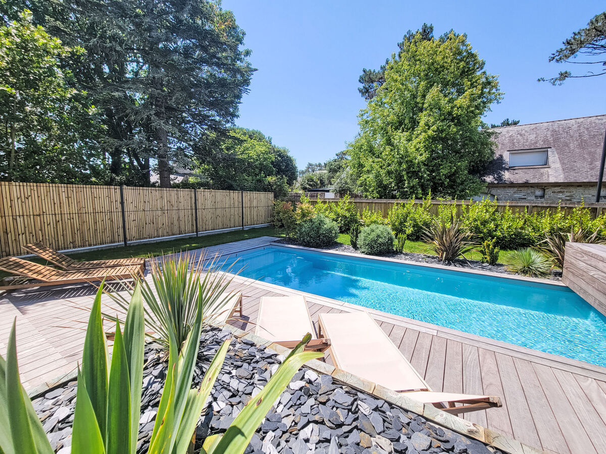 A usage privé: jardin 635 m2 (clôturé), piscine chauffée (8 x 3 m, disponibilité saisonnière: 15.Jun.