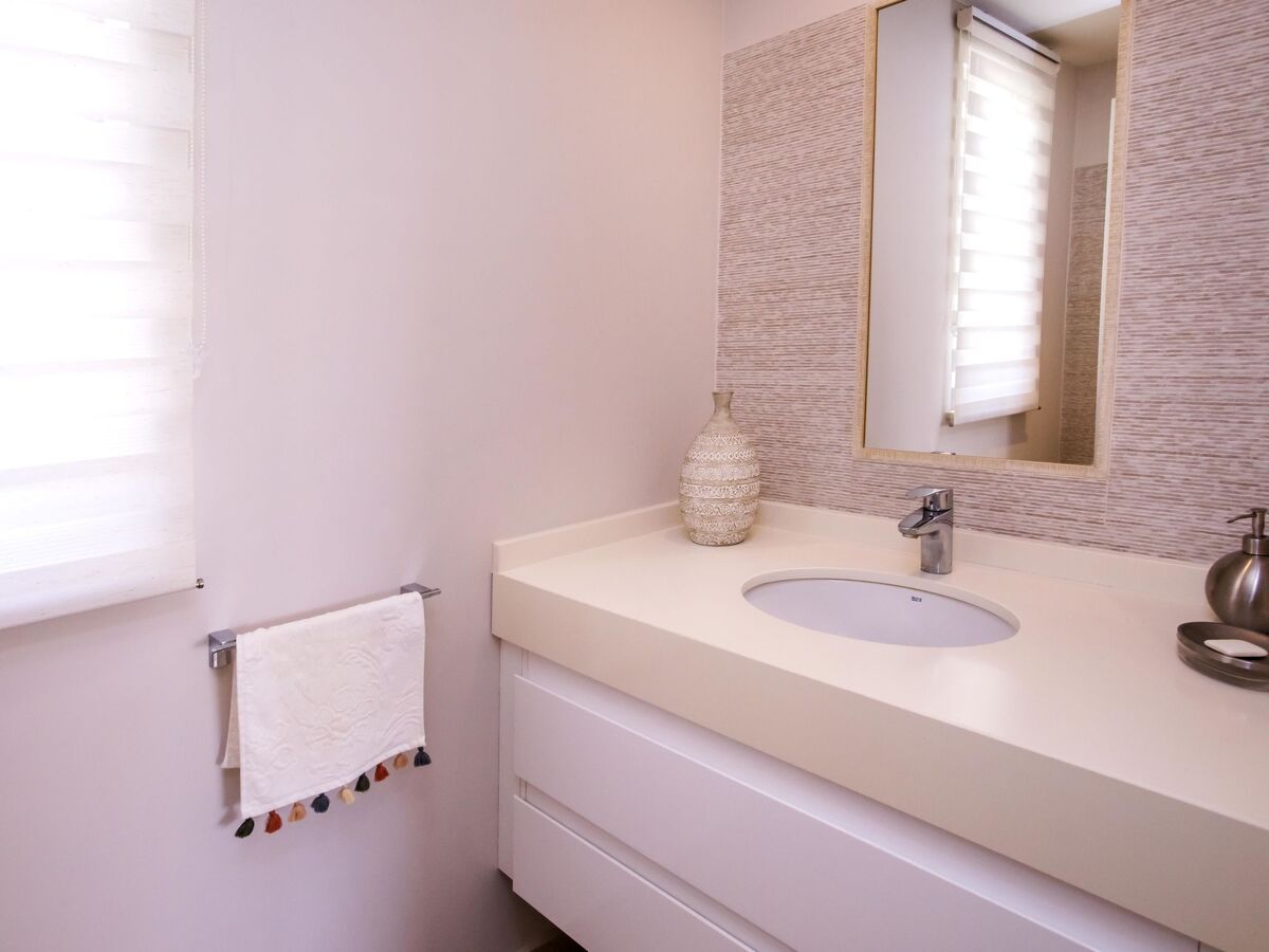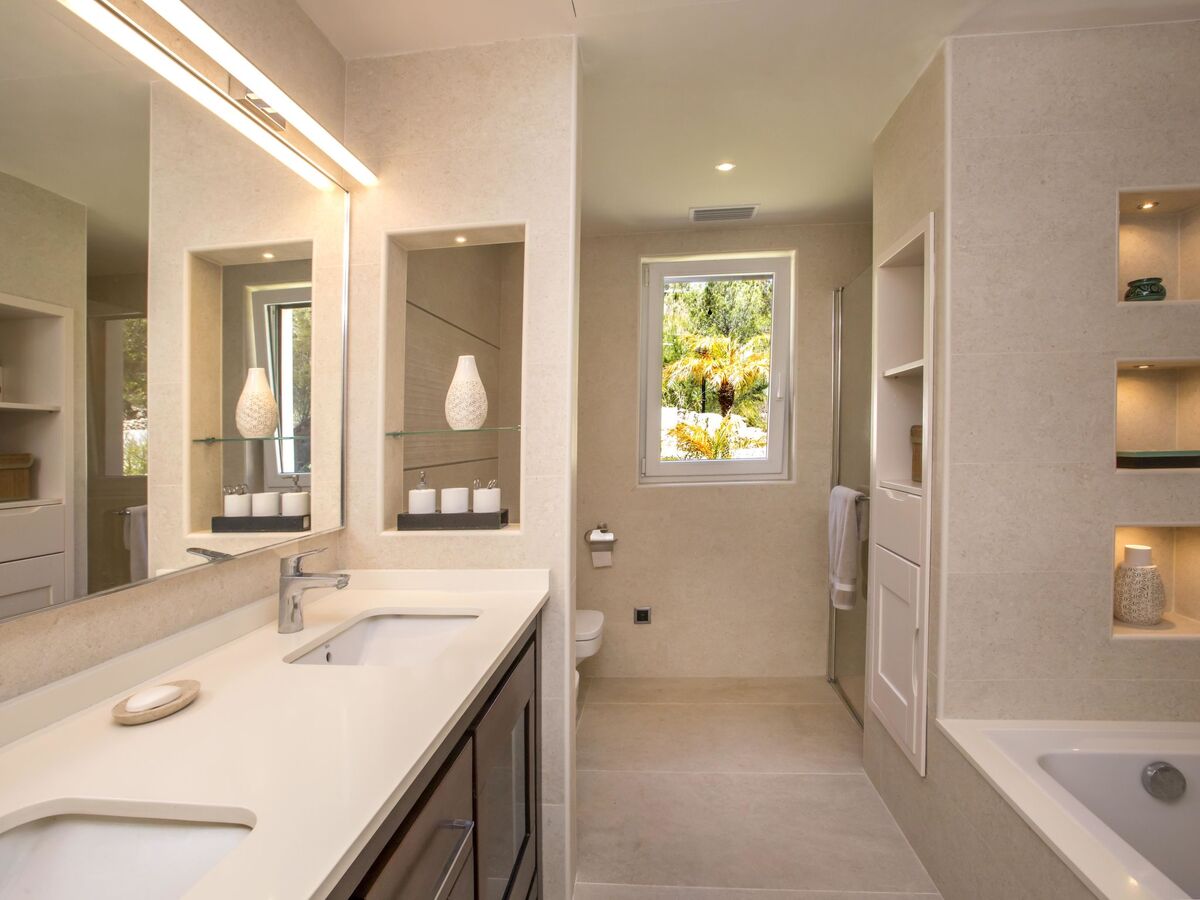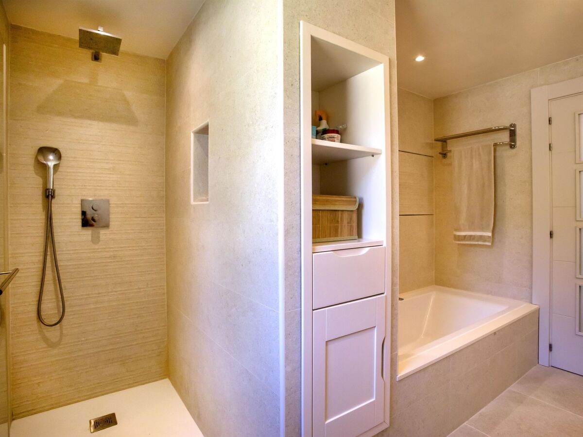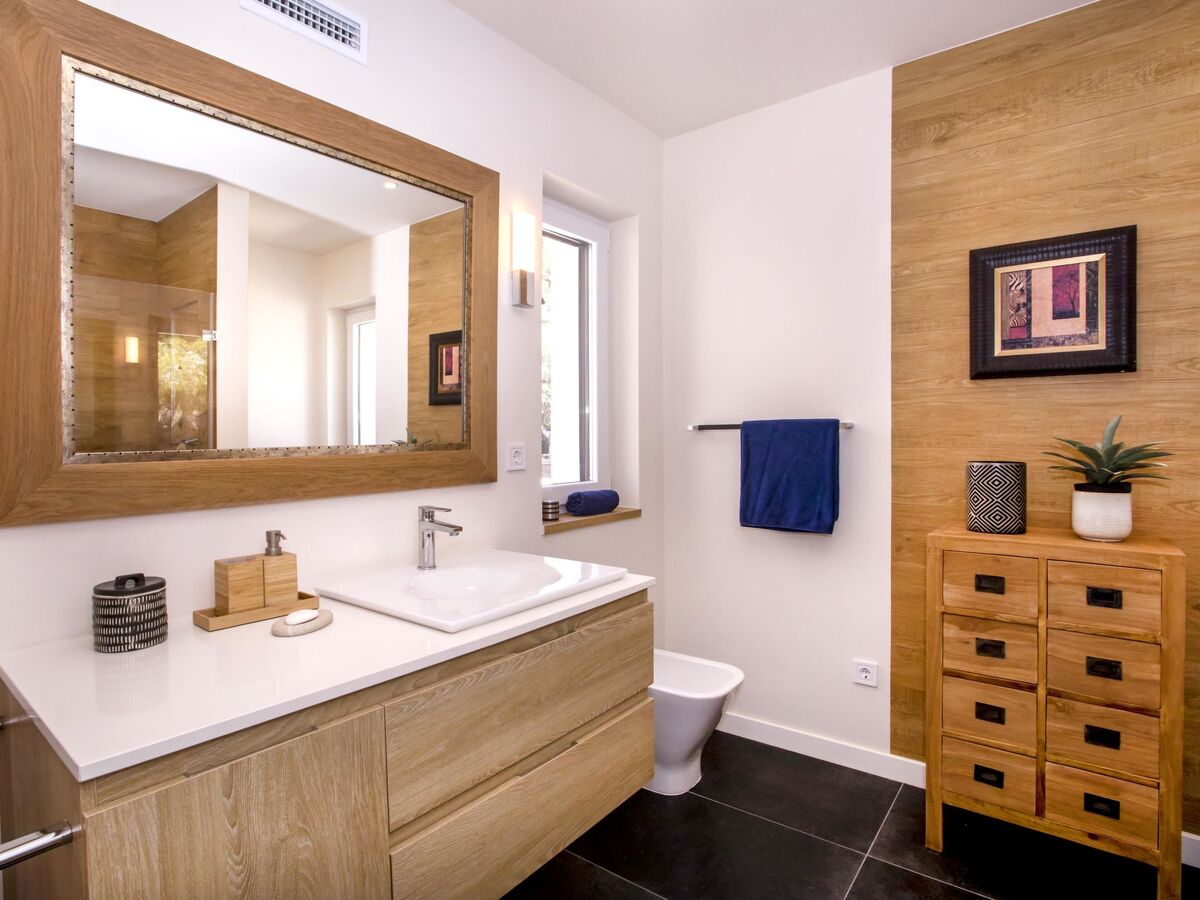 1 chambre 35 m2 avec 1 grand-lit (160 cm, longueur 200 cm), douche/bidet/WC, double vasque, air-conditionné et chauffage à air chaud.
