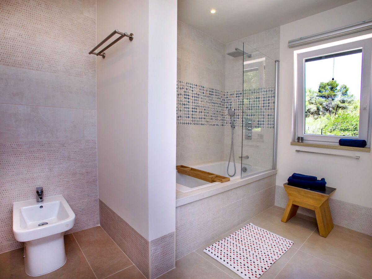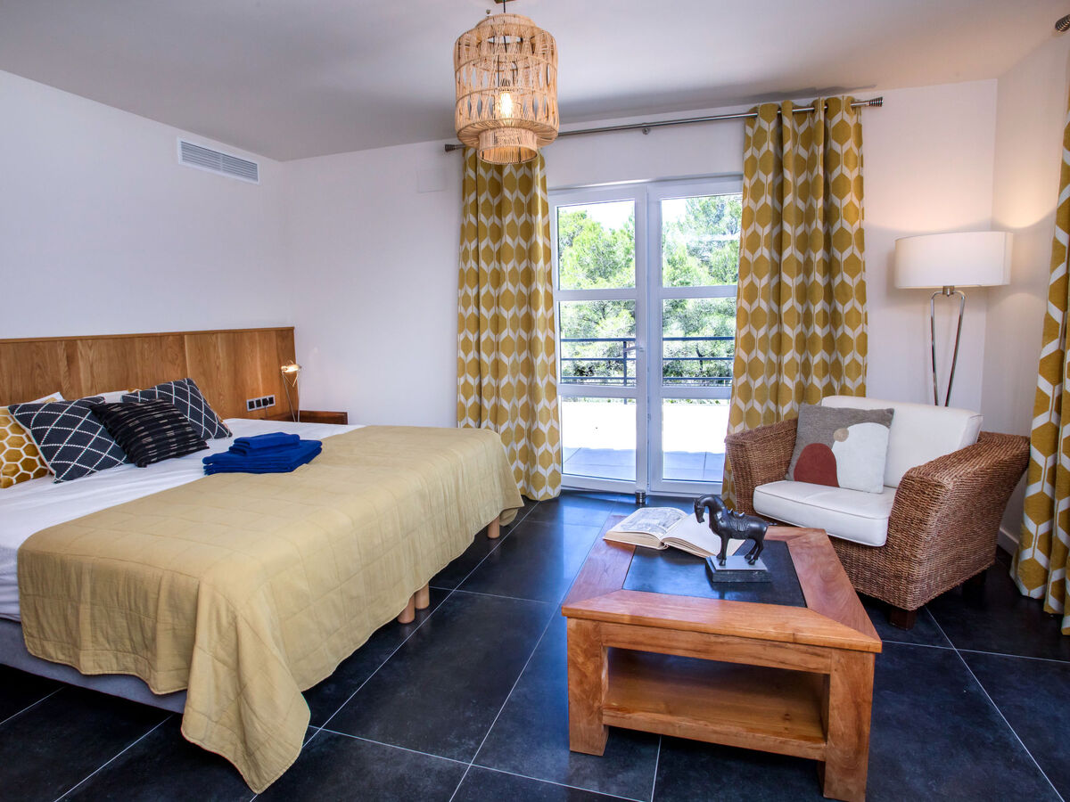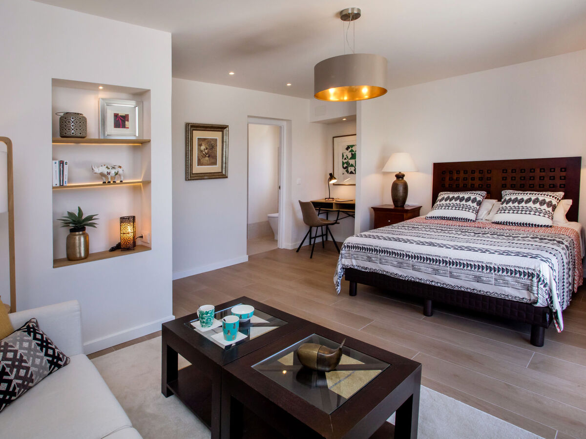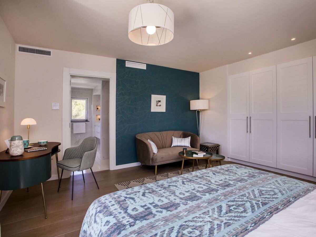 1 chambre 32 m2 avec 1 grand-lit (160 cm, longueur 200 cm), bain/bidet/WC, double vasque, air-conditionné et chauffage à air chaud.