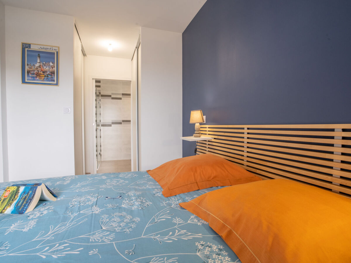 1 chambre avec 1 grand-lit (160 cm, longueur 200 cm), douche.