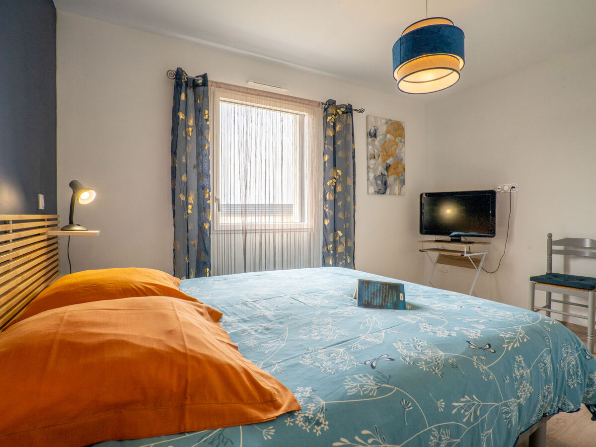 1 chambre avec 1 grand-lit (160 cm, longueur 200 cm).