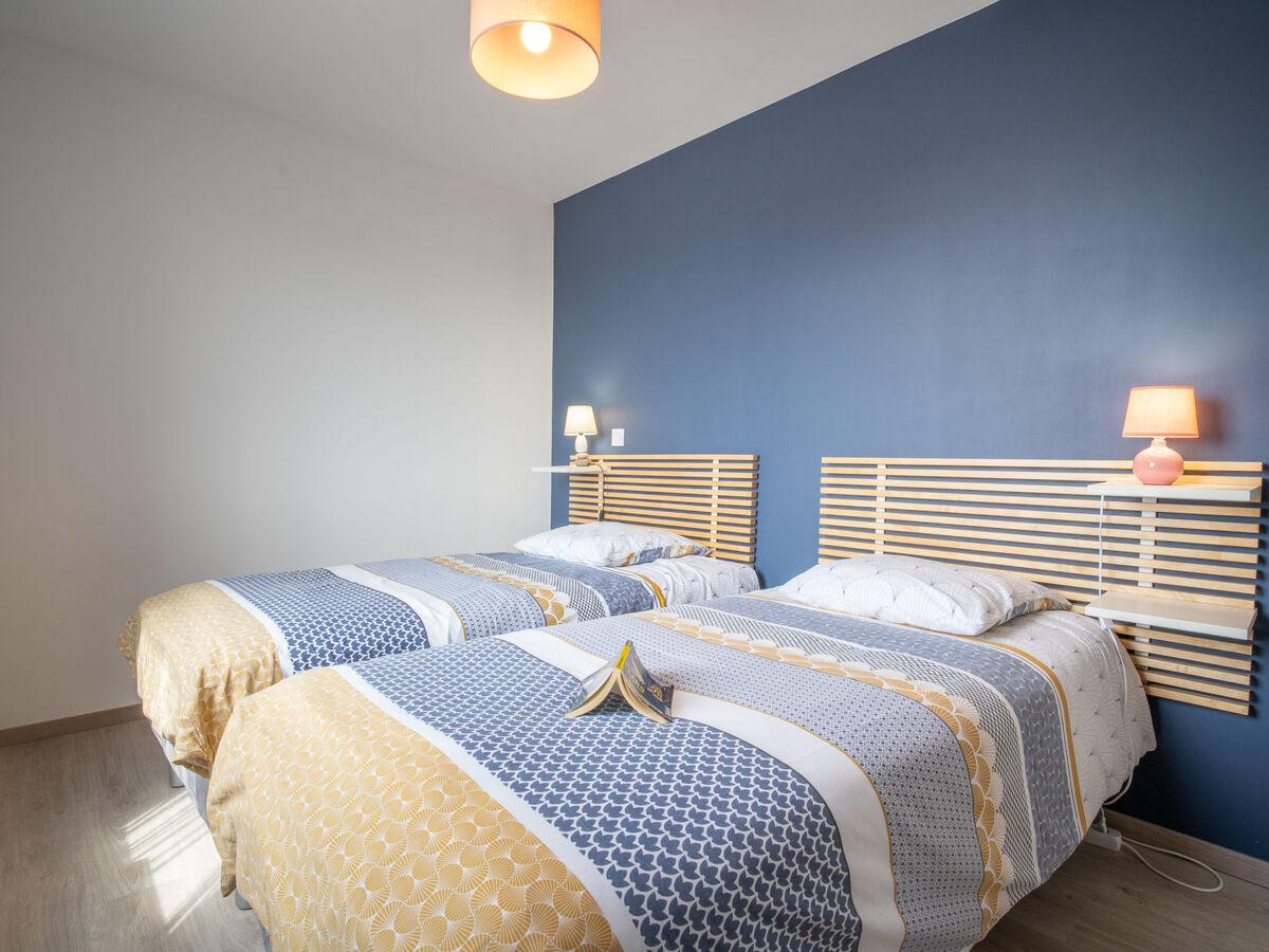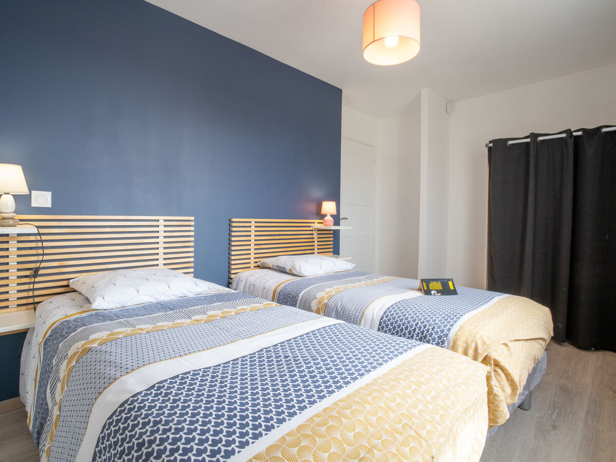 À l'étage supérieur: 1 chambre avec 2 lits (90 cm, longueur 200 cm).