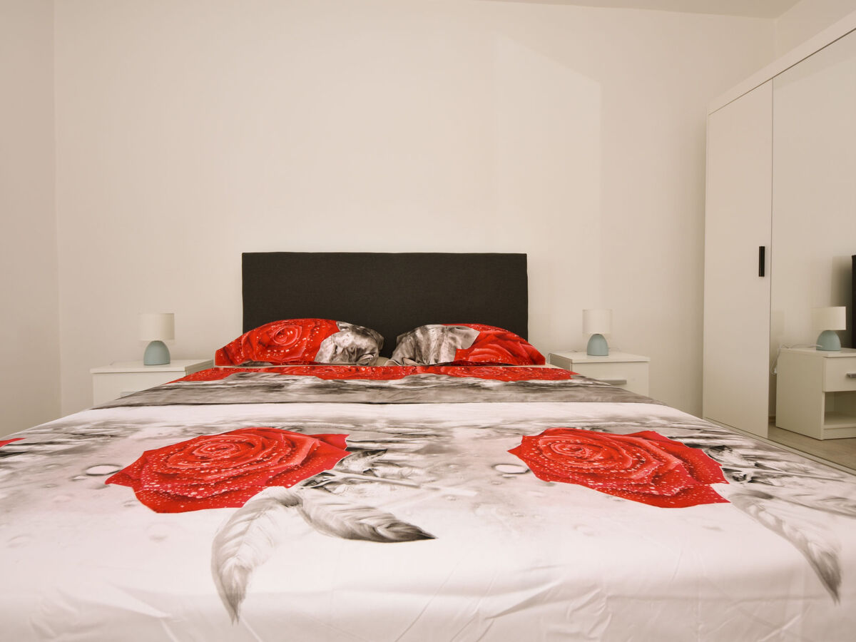 1 chambre avec 1 grand-lit (160 cm, longueur 200 cm).