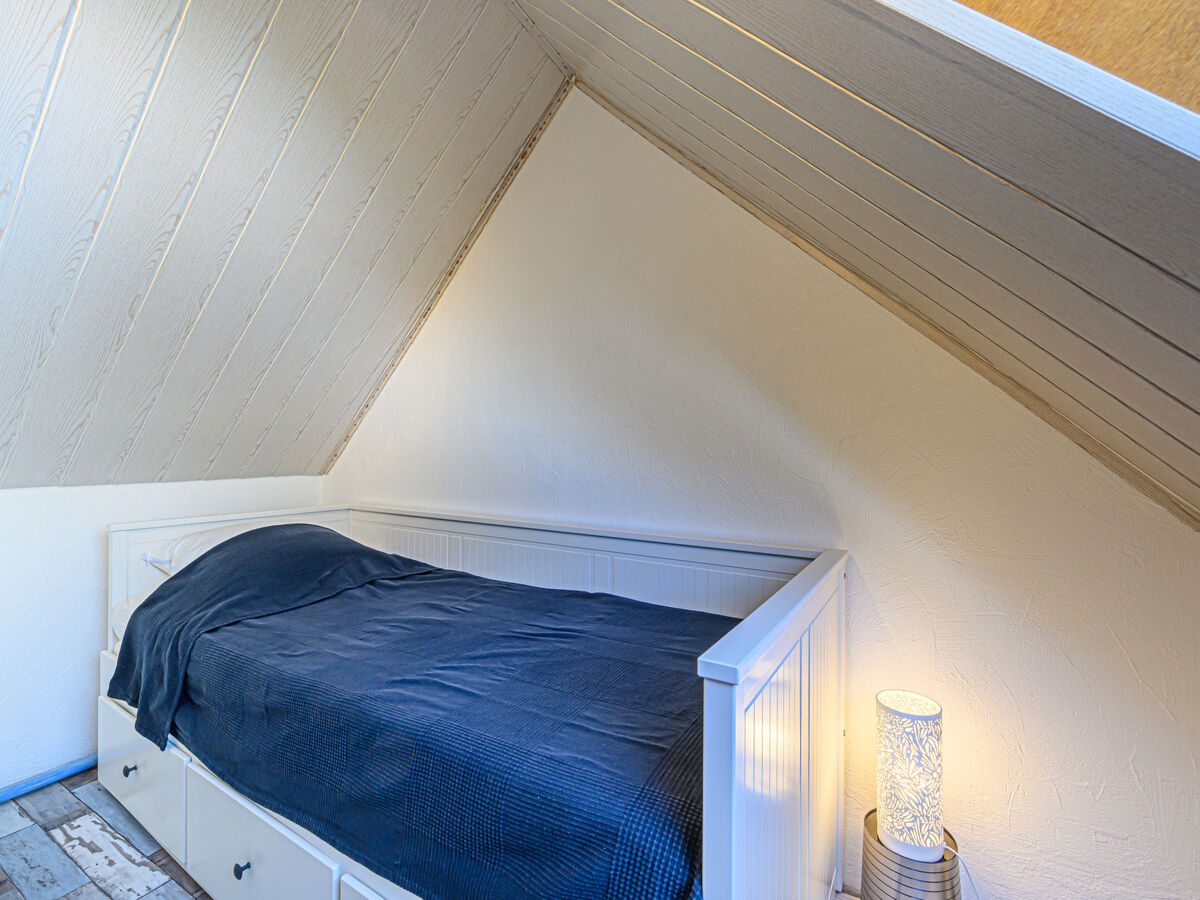 À l'étage supérieur: 1 chambre avec 1 lit (90 cm, longueur 190 cm).