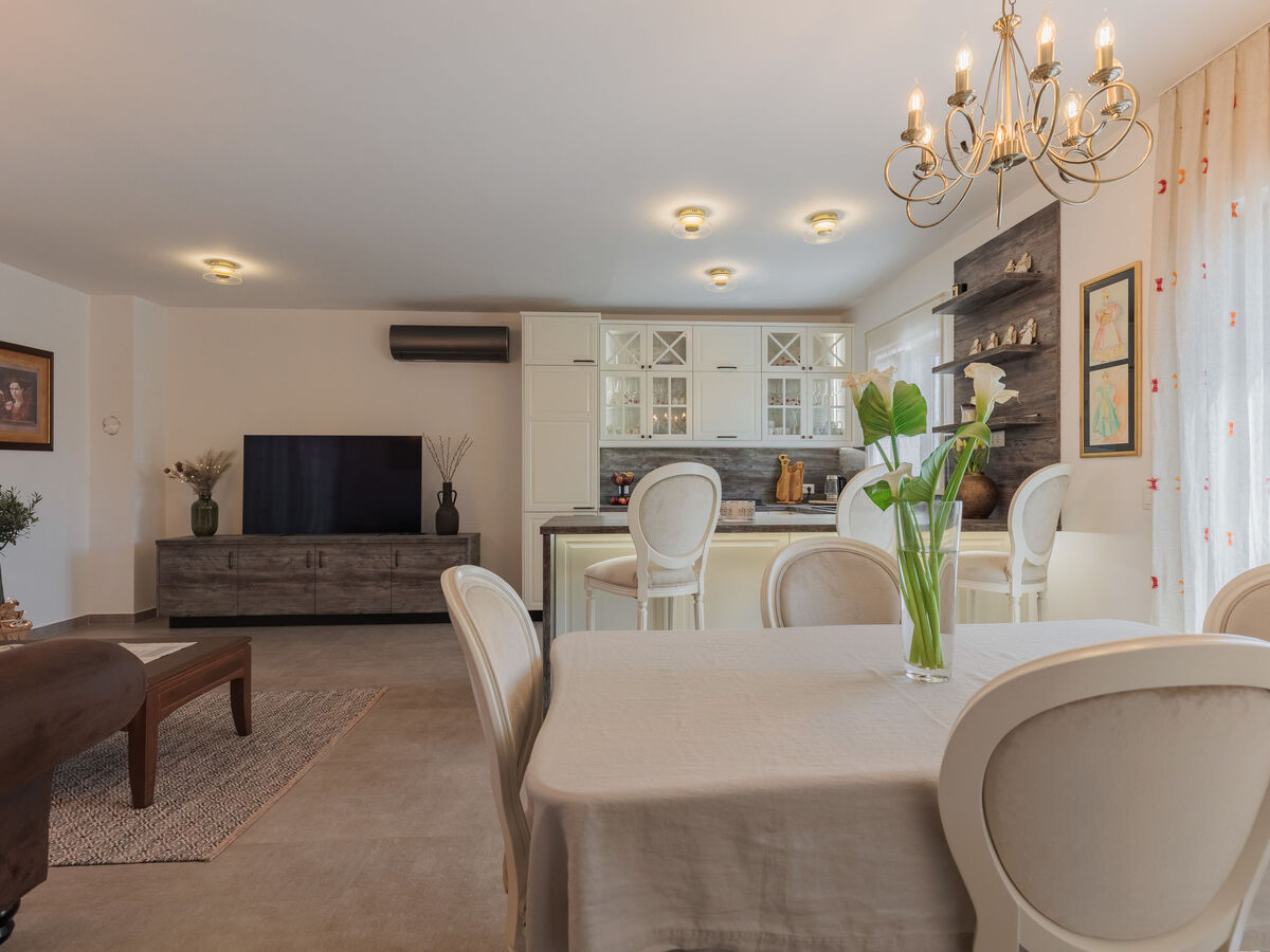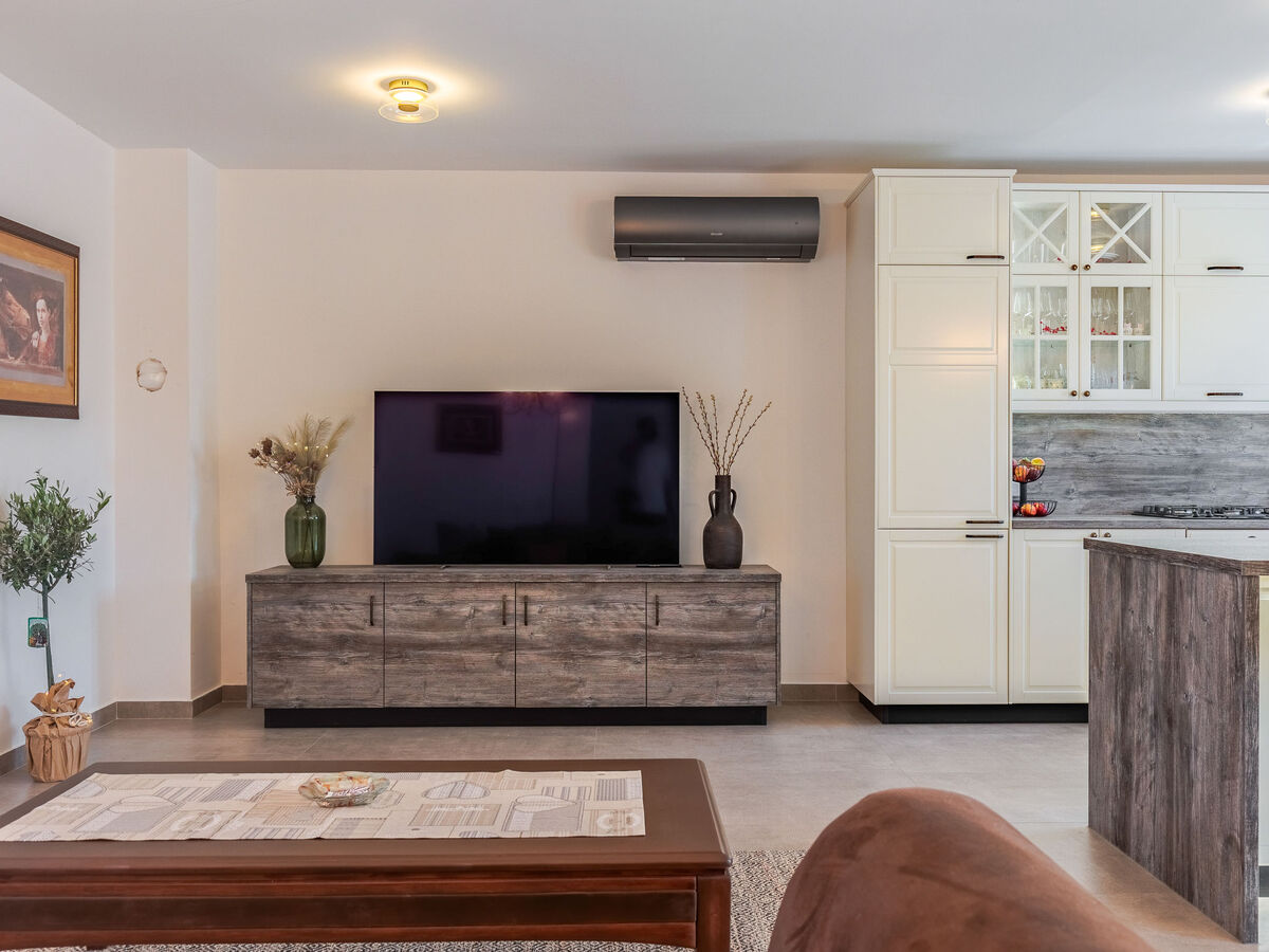 Séjour/salle à manger avec TV (satellite) et air-conditionné.
