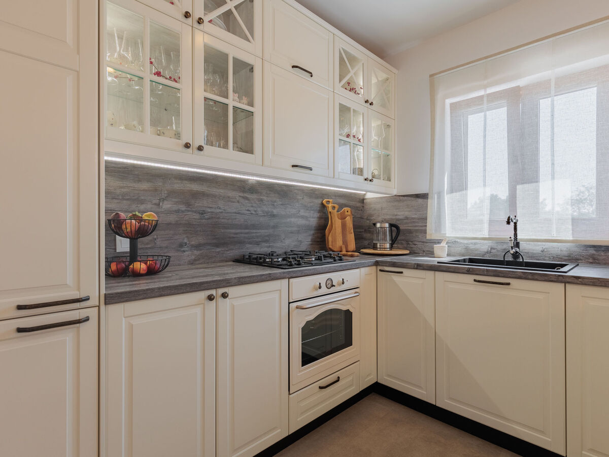Cuisine ouverte (four, lave-vaisselle, 4 feux, grille-pain, bouilloire électrique, congélateur, cafetière électrique).