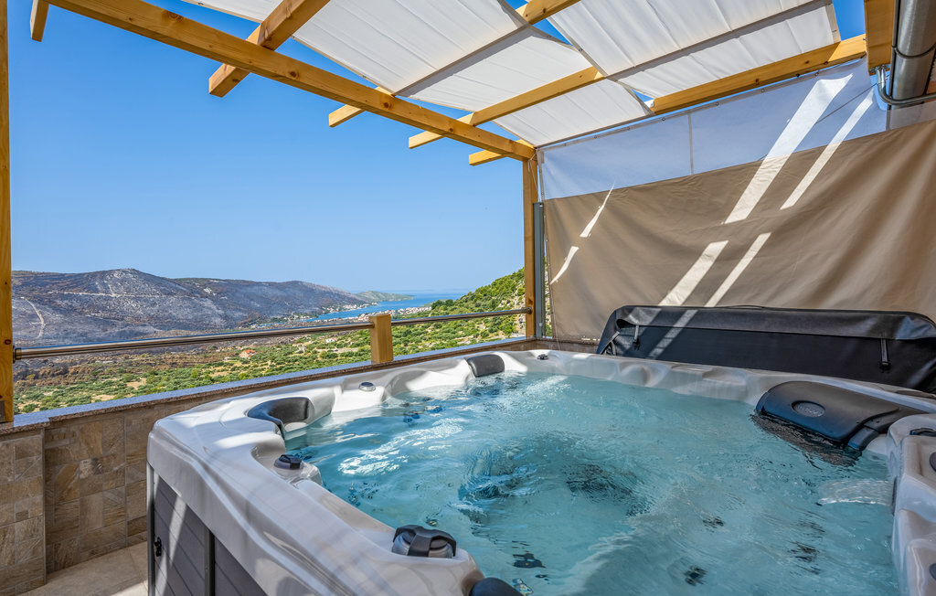 Bien-être à l'extérieur : Location de vacances disposant de chaises-longues et d'un ou plusieurs équipements tels que piscine extérieure, jacuzzi extérieur, lit à baldaquin de jardin etc...