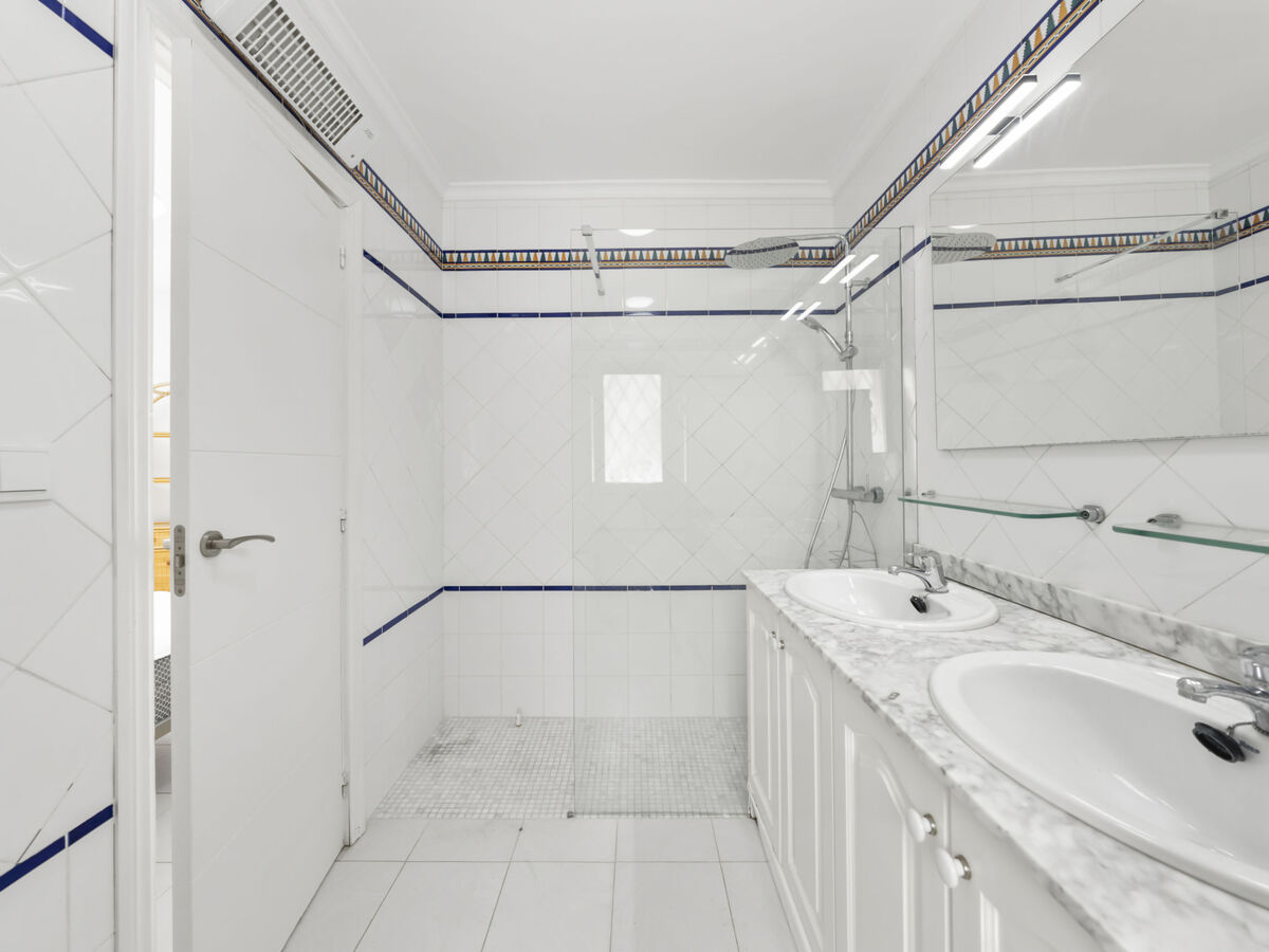 1 chambre avec 1 grand-lit (160 cm, longueur 190 cm), douche/bidet/WC, double vasque, air-conditionné et chauffage à air chaud.