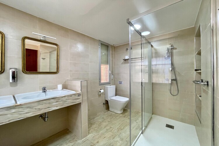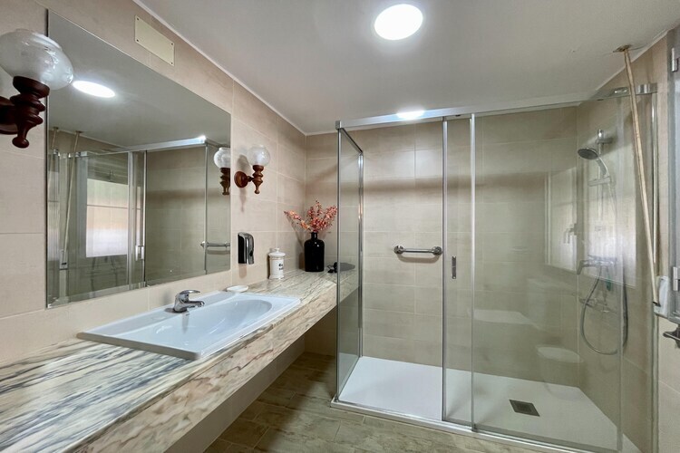 Rez-de-chaussée: (Entrée(accès par l'extérieur), cuisine(foyer, robinet d'eau bouillante, grille-pain, hotte, cafetière/percolateur, four, micro ondes, lave-vaisselle , combinaison réfrigérateur/congélateur, lave-linge ), cuisine ouverte(foyer, cafetière/percolateur, micro ondes, combinaison réfrigérateur/congélateur), salle à manger-salon(Canapé-lit simple, TV(cable, écran plat), table, cheminée, coin salon), chambre(lit simple, lit simple), chambre(lit simple, lit simple), chambre(lit simple, lit simple, Lit superposé ou 2 x lit simple), chambre(Lit superposé ou 2 x lit simple, Lit superposé ou 2 x lit simple), salle de bains(douche, lavabo, WC, sèche-cheveux), salle de bains(douche, lavabo, lavabo, WC), chauffage, climatisation) Au 1er étage: (Entrée(accès par l'extérieur, accès par l'escalier extérieur), cuisine(foyer, robinet d'eau bouillante, grille-pain, hotte, cafetière/percolateur, combinaison réfrigérateur/congélateur), salle à manger-salon(Canapé-lit simple, TV(cable, écran plat), table, coin salon), chambre(lit simple, lit simple), salle de bains(douche, lavabo, WC, sèche-cheveux), salle de bains(douche, lavabo, WC), chauffage, climatisation) portes-fenêtres, terrasse(privé, 100 m2), jardin(privé, 500 m2), mobilier de jardin, barbecue, parking, piscine(privé, extérieur, ouvert de Jan jusqu'à (inclus) Dec), hamac, hamac, chaise haute, table à repasser, fer à repasser