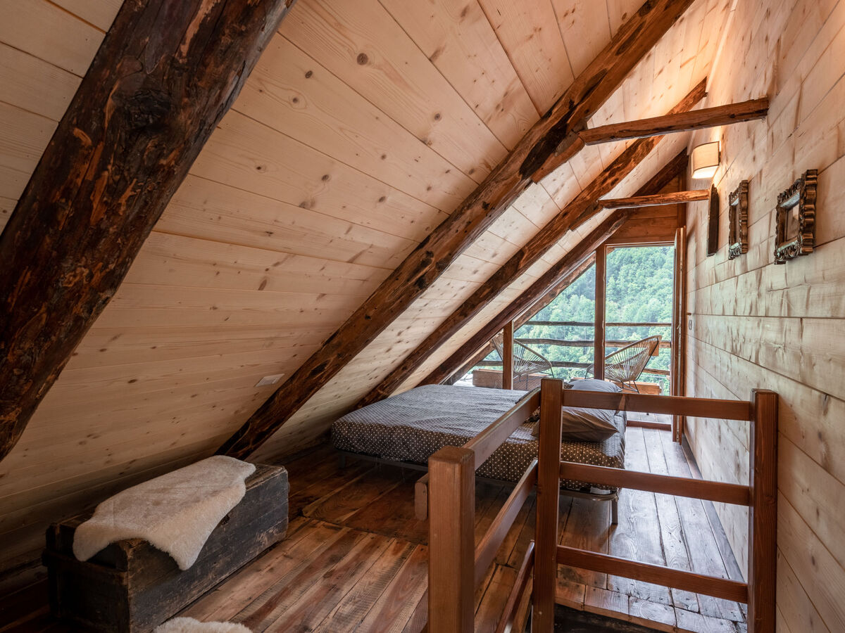 À l'étage supérieur: 1 chambre double, mansardée avec 1 lit double.