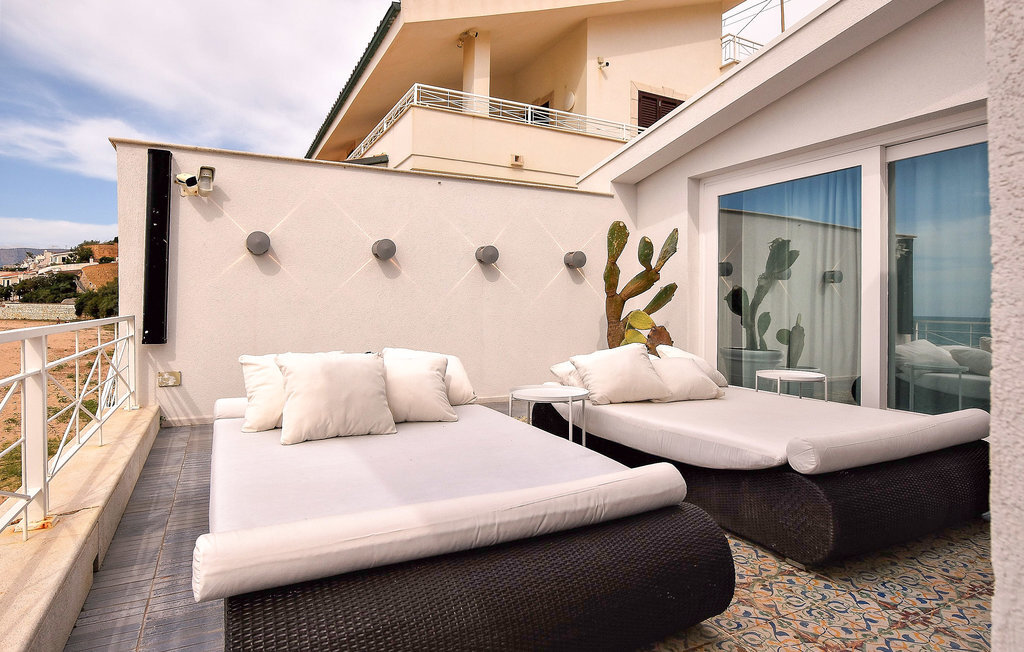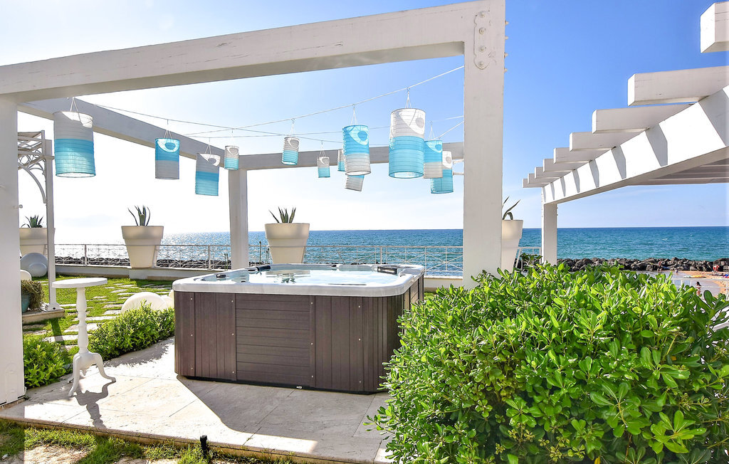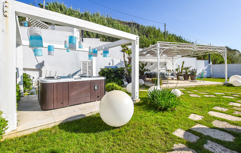 Bien-être à l'extérieur : Location de vacances disposant de chaises-longues et d'un ou plusieurs équipements tels que piscine extérieure, jacuzzi extérieur, lit à baldaquin de jardin etc...