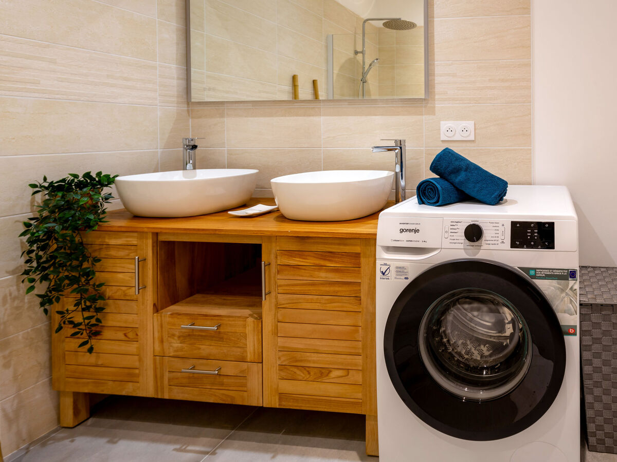 A disposition: lave-linge, fer à repasser, sèche-cheveux.