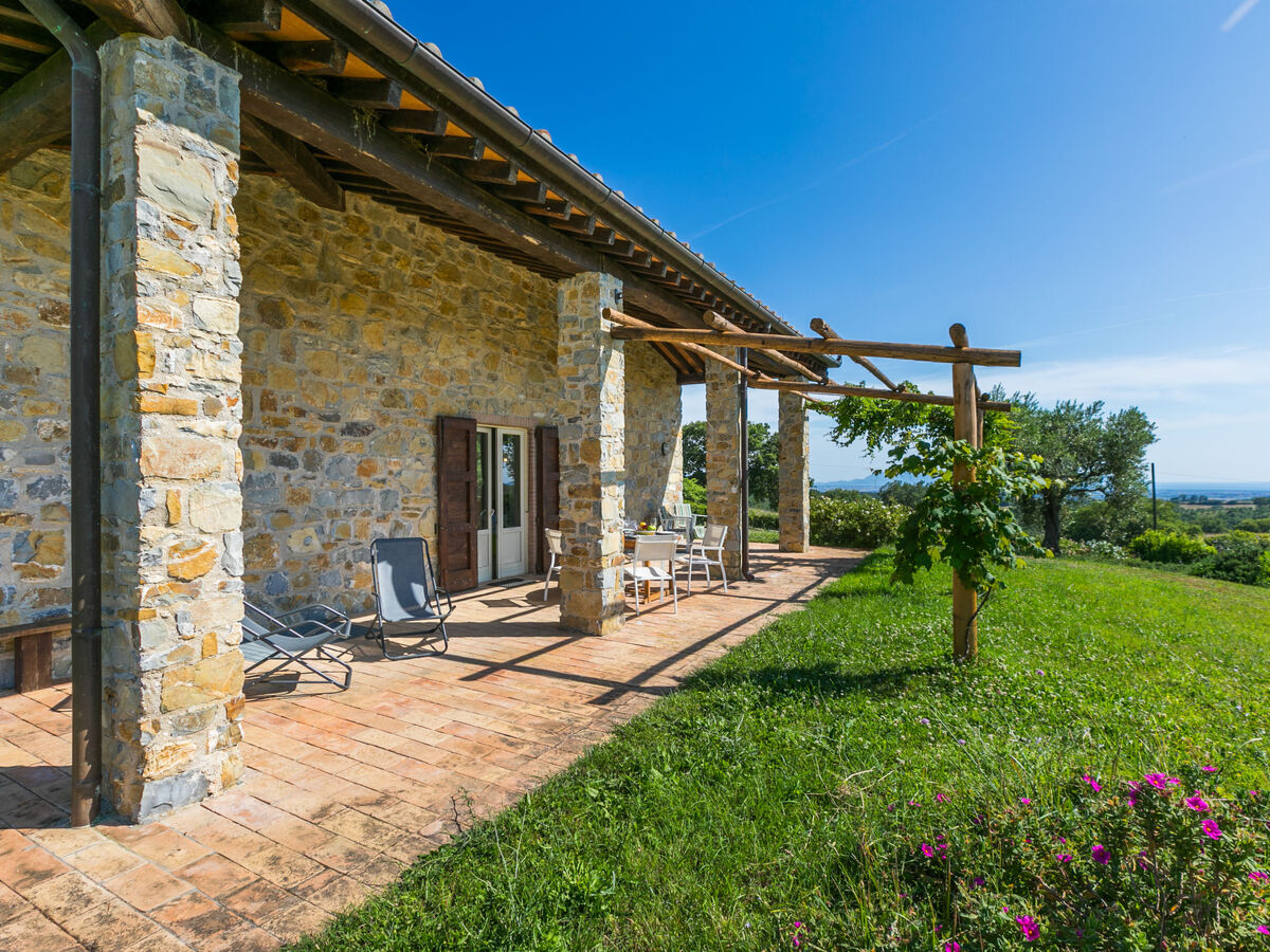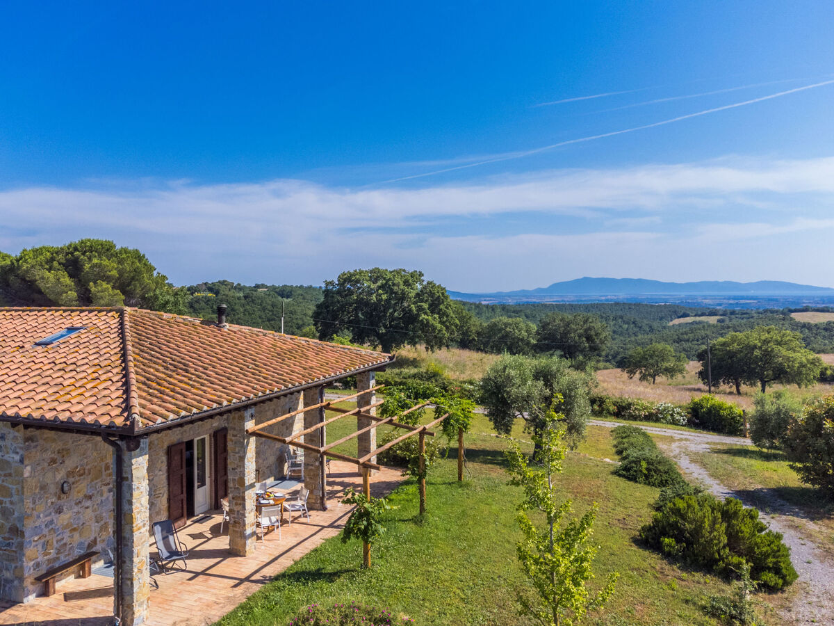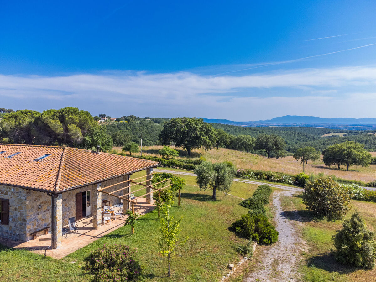 À 5 km du centre de Magliano in Toscana, situation isolée, tranquille sur une colline, à 20 km de la mer, dans la verdure.