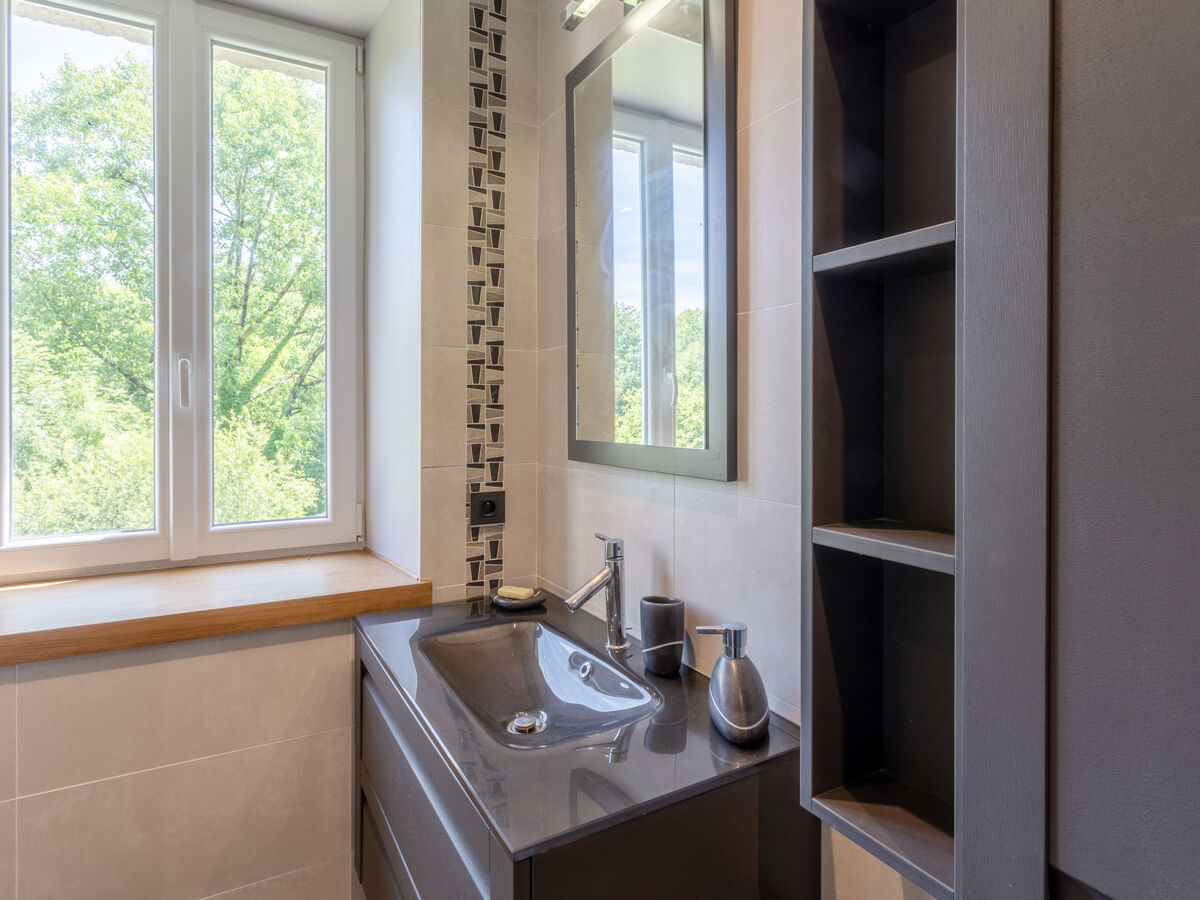 2ème étage: galerie avec 1 lit (120 cm, longueur 170 cm), TV et écran plat avec douche/WC.
