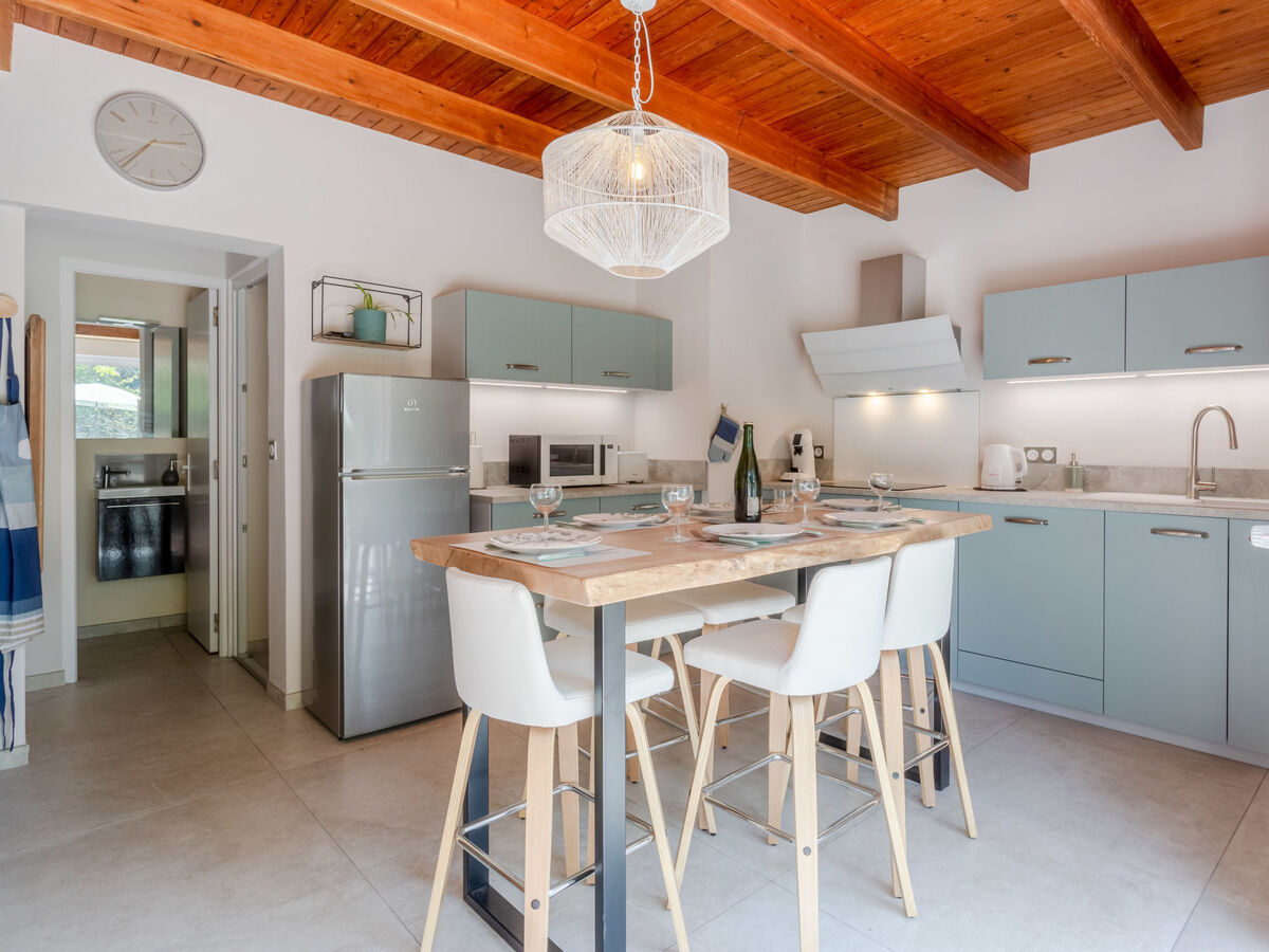 Cuisine (four, lave-vaisselle, 1 plaques à induction, grille-pain, bouilloire électrique, micro-ondes, cafetière électrique) avec TV, écran plat, chauffage à air chaud et chauffe eau.