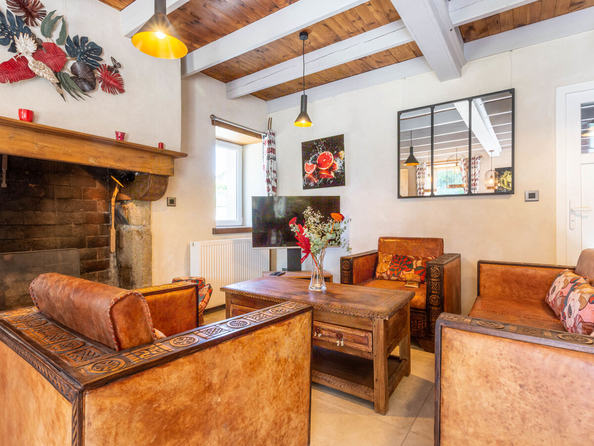 À l'étage supérieur: 1 chambre avec 1 lit double (160 cm, longueur 200 cm), TV et écran plat.
